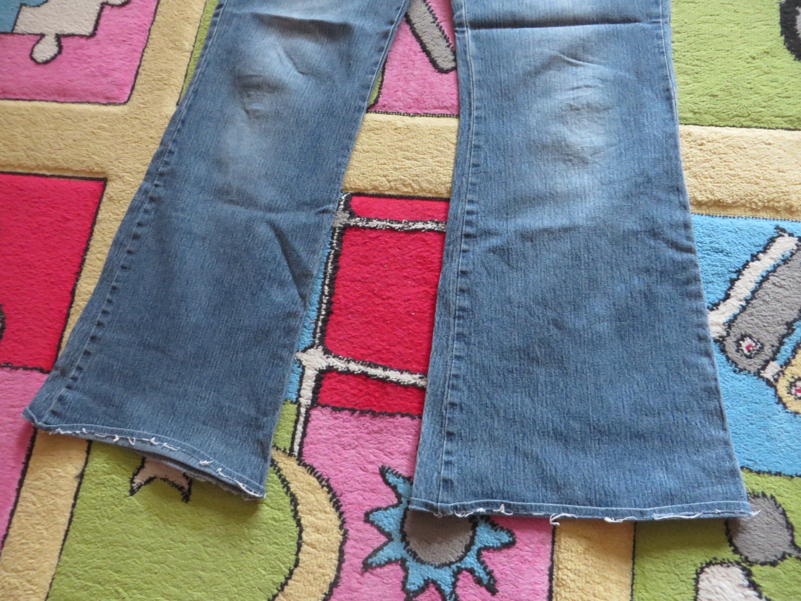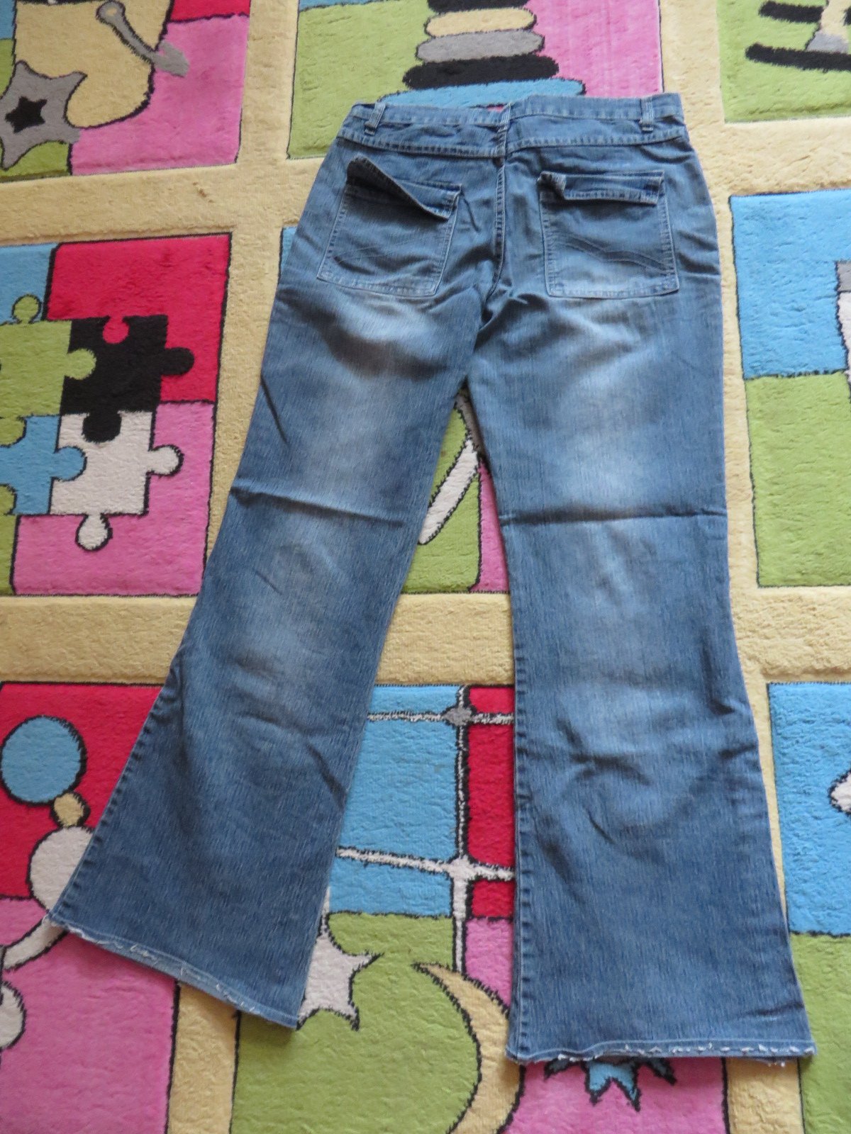 Predám dievčenské / dámske zvonové rifle, veľkosť je M. Spodok riflí je rozšírený, pás je 82 cm, boky sú 53 cm x 2 a celková dĺžka je 102 cm.