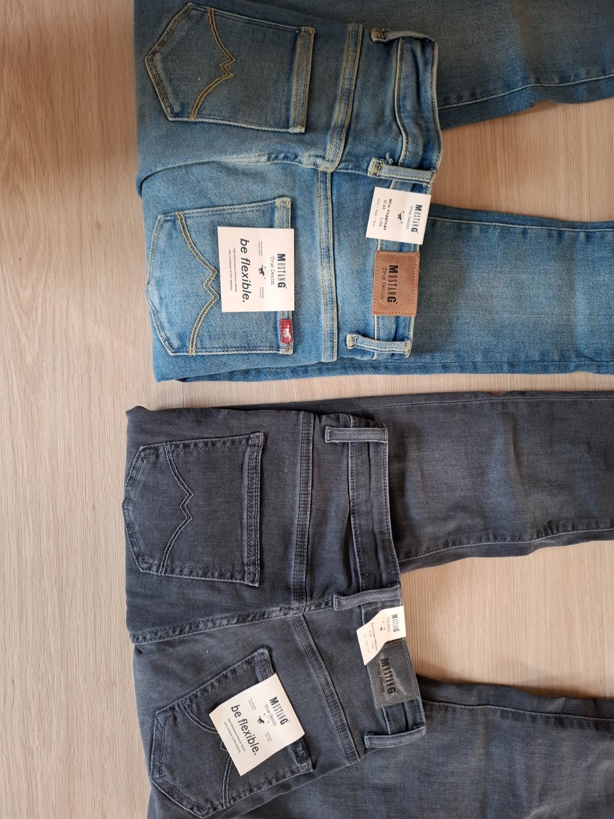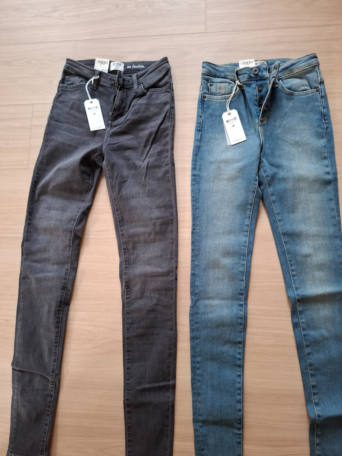 Ponúkam na predaj nové dámske rifle zn. MUSTANG. Kupované v Anglicku, netrafili sme veľkosť, s visačkami, vhodné aj ako darček. Veľ. cca 34/36, pôvodné označenie W26 L32, treba premerať. Celková d...
