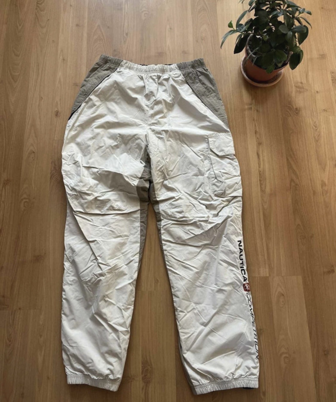 Predám nohavice krémovej farby, velkost S, vrecka hore aj nad kolenami vacsue kapsy s priklopkou,, vzadu tiež vrecka, bez poškodenia, jemne širšie, na gombiky zapinanie