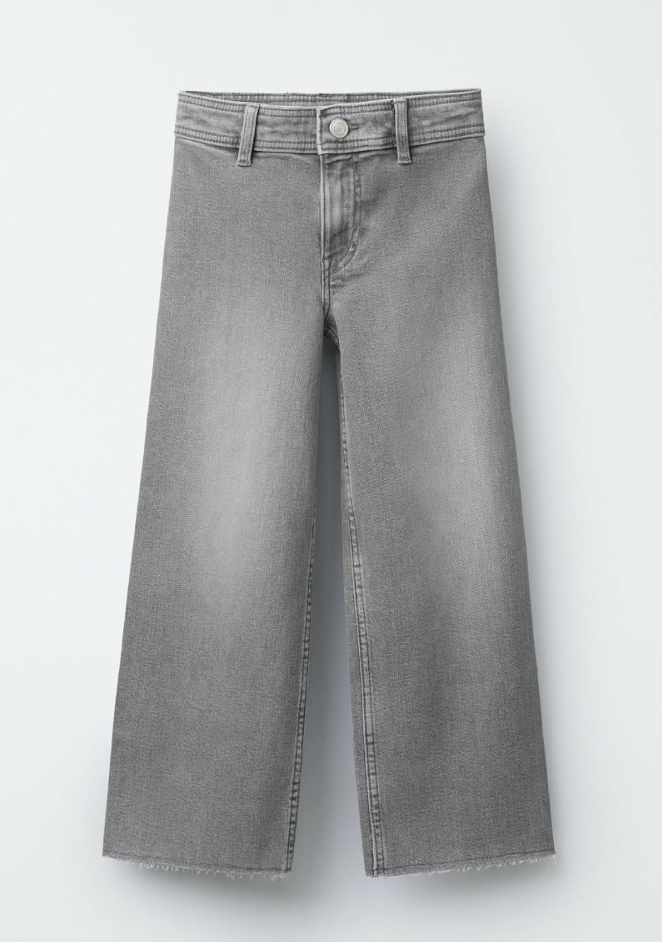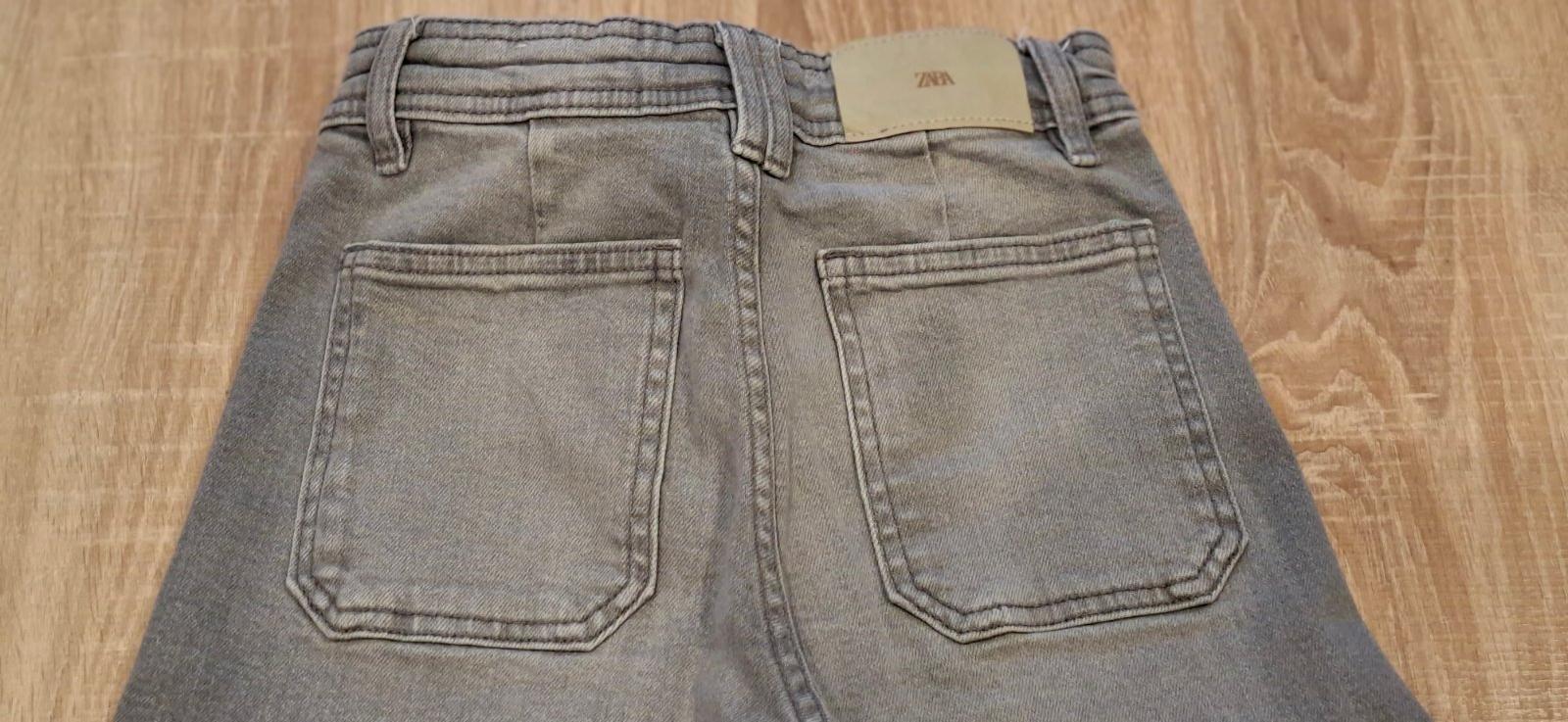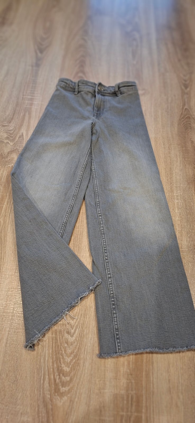 Rifle s vysokym pásom , rovneho strihu. Farba šedočierna, s leopardím detailom. Daju sa nosiť ohnuté ( foto) s leopardím detailom alebo aj bez . Velkostne sedia na 10-11 rokov