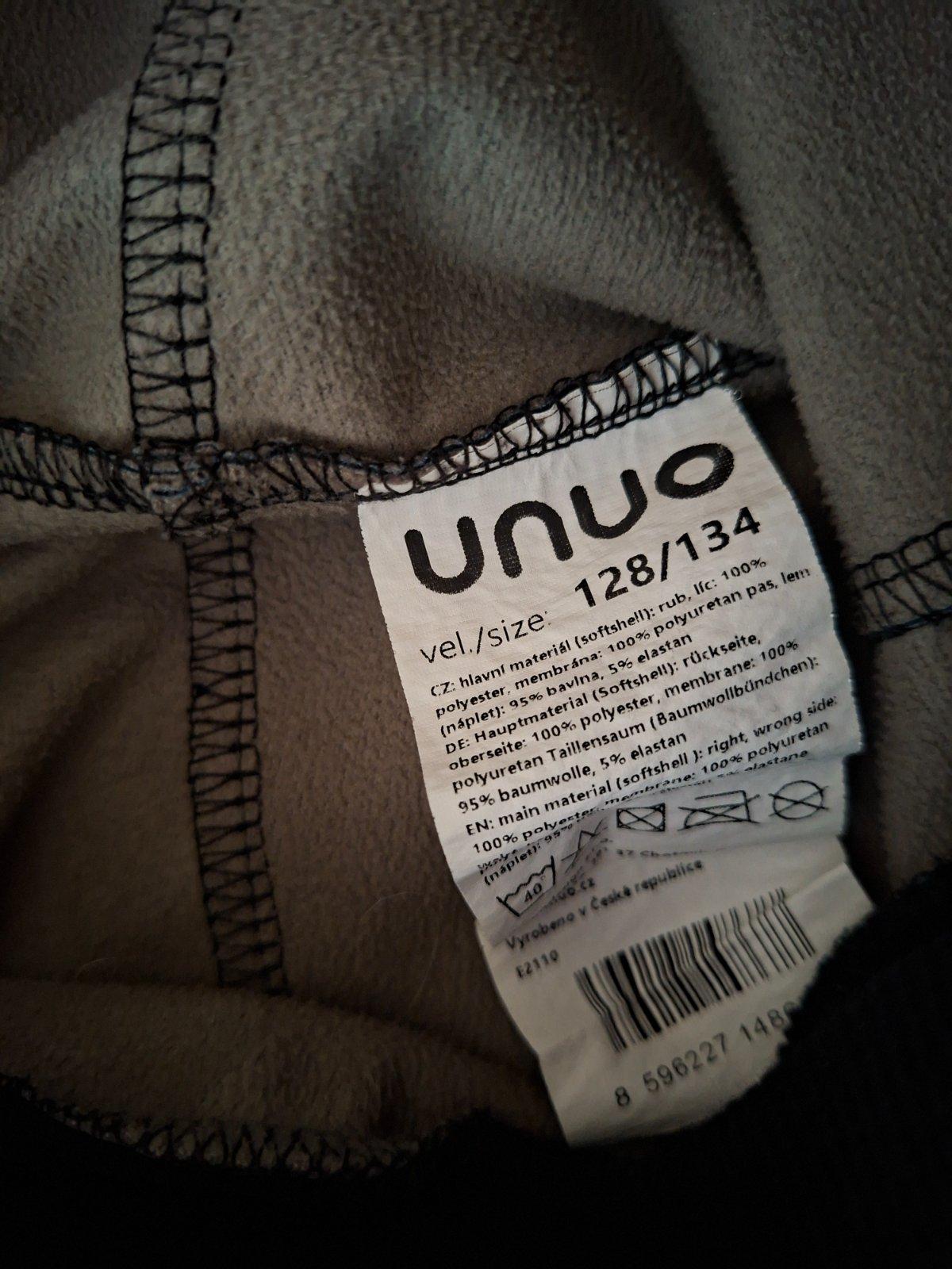 Softshellove pružné sporty nohavice značky Unuo v top stave, s flísovou vnútornou vrstvou a napletom v páse, veľkosť 128/134, nepremokavé, zateplené, užšie na spôsob legín. Celková dĺžka nohavíc 75 cm, vnútorná dĺžka nohavíc 58 cm, šírka pružného napletu 26 cm, šírka bokov 34 cm.