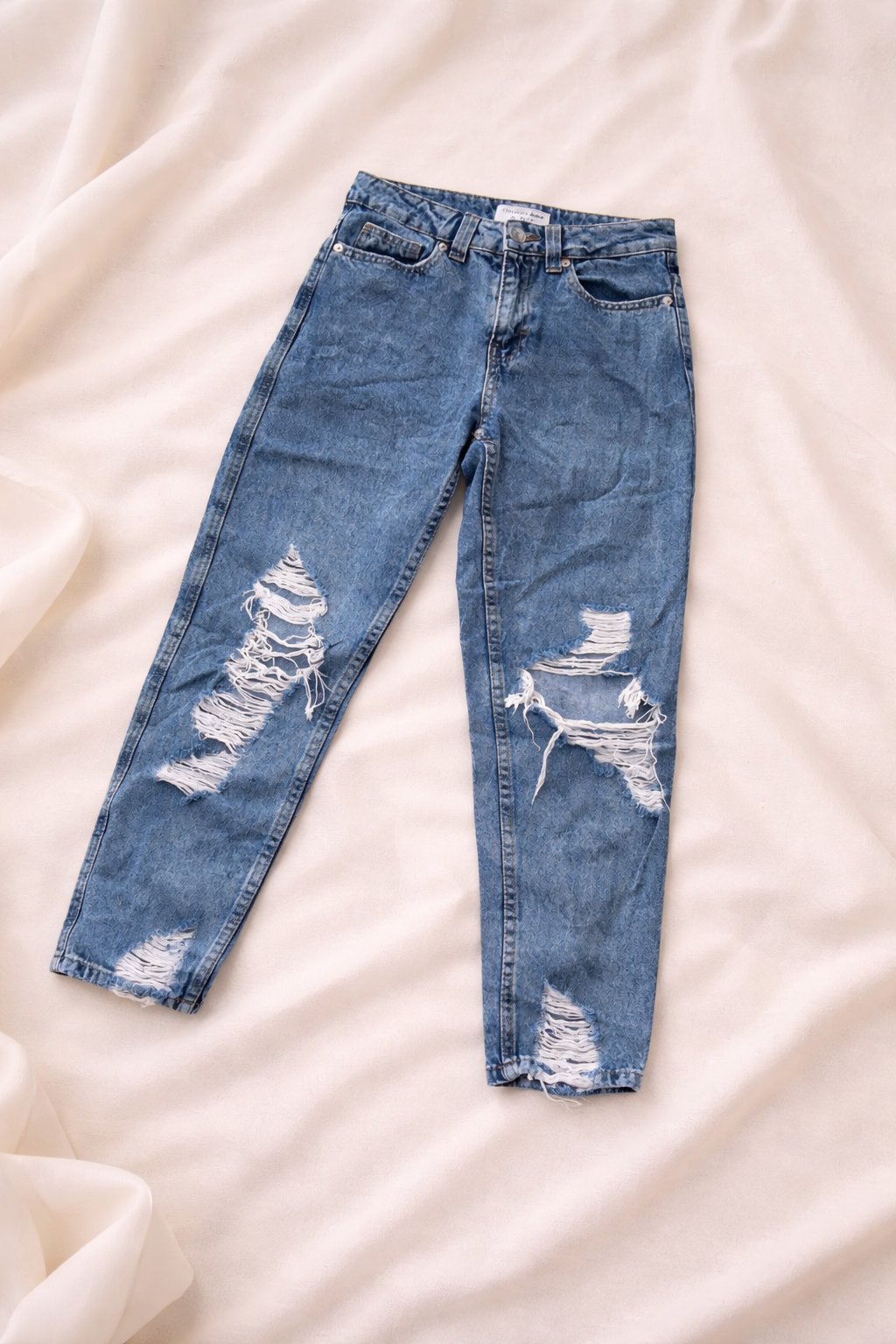 Moderné dámske rifle s trendy roztrhaným efektom. Majú pohodlný strih a krásnu modrú farbu, ktorá sa ľahko kombinuje s rôznymi outfitmi. Skvelé na bežné nosenie aj štýlové kombinácie.