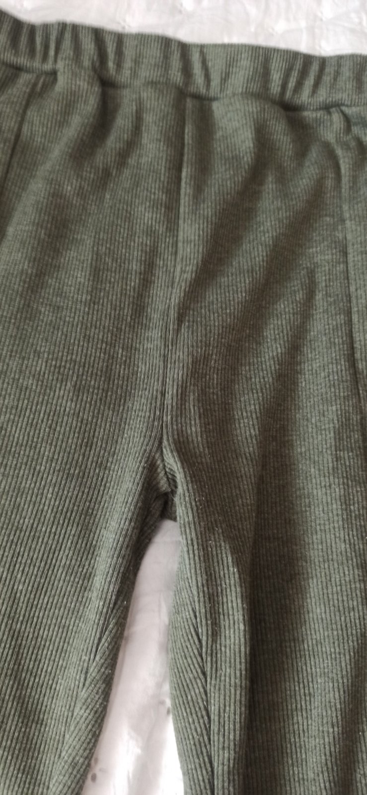 Zachovale, s bielymi pasikmi, zlozenie 70 % polyester, 25 % viskoza a 5 % elastan. Mierne zmolky, nevidno takmer. Celkova dlzka 82 cm a pas 32 cm + guma vzadu s#a natahuje.