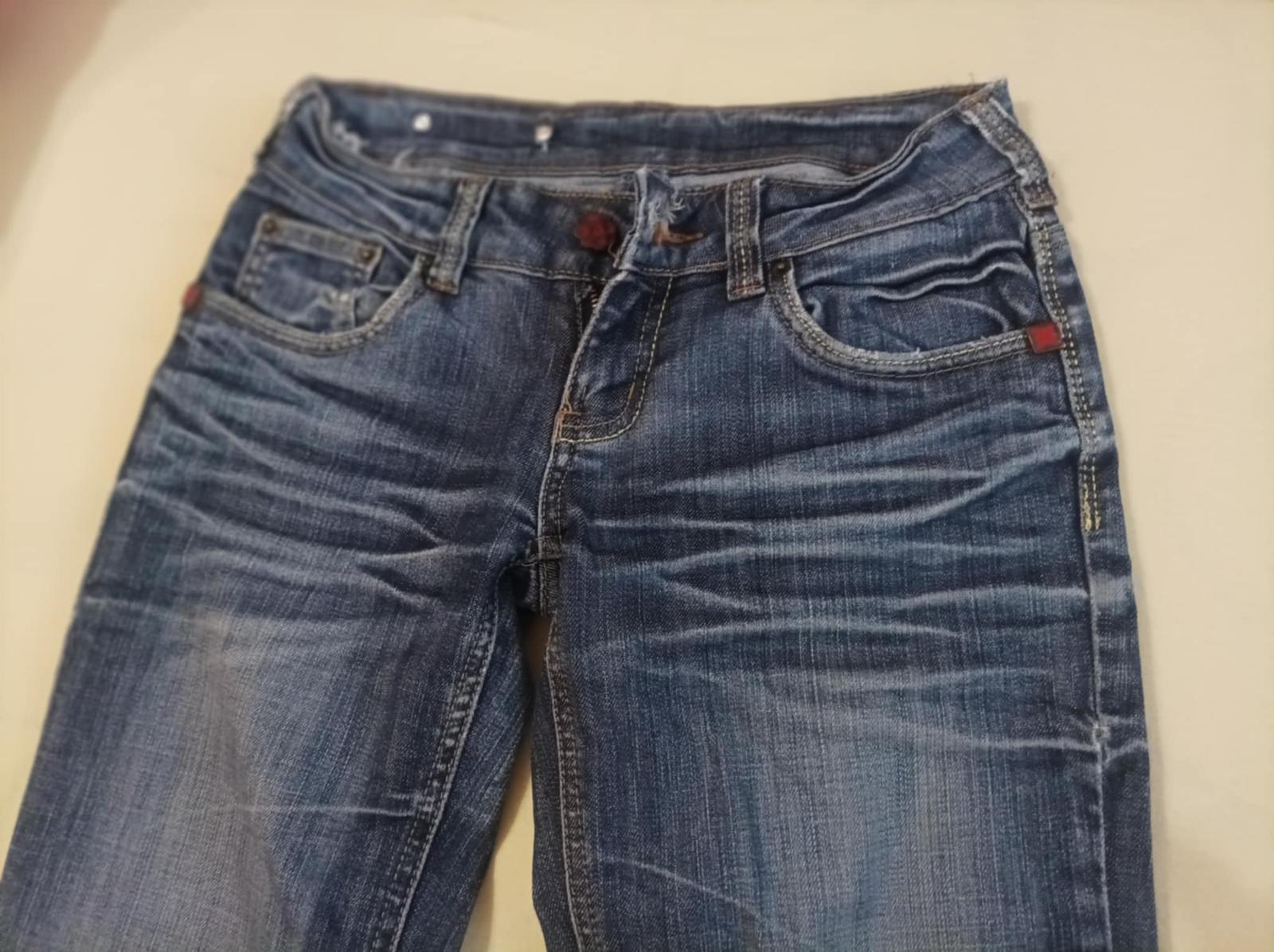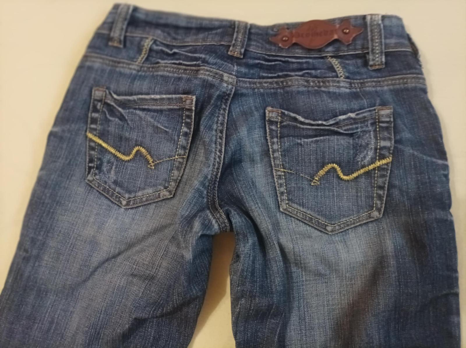Predám bledomodré specialne vyšuchane a pokrčené zn. Dromedar, velkosť 26. Nohavice sú dole mierne rozšírene.