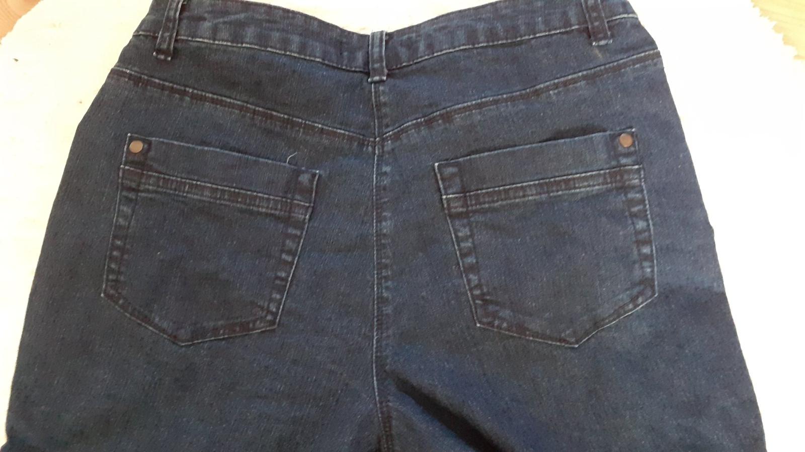 Tm. modre potrhane rifle, v dobrom nosenom stave, bl. modre kombinovane so sedou trickovinou, skor 7/8velkost.Cena spolu.
