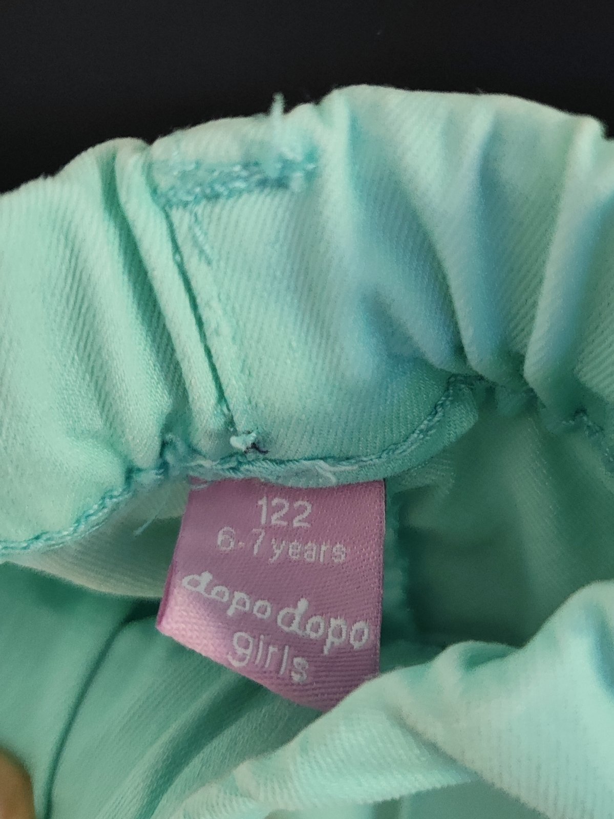 Super nohavice, tenučké, pohodlné, voľnejší strih, dobrý nosený stav, skôr na štíhlejšie dievčatko, dĺžka bočná 70cm, dĺžka vnútorná 48cm, šírka v páse 25-30cm. Veľkosť uvedená 110, ale sedia na 122.