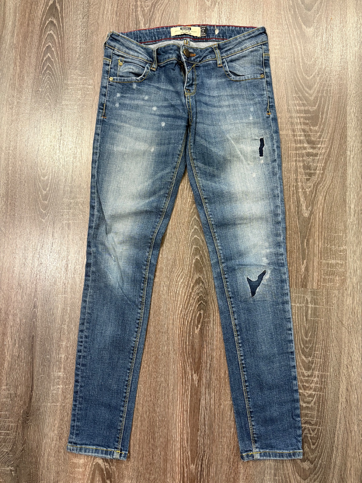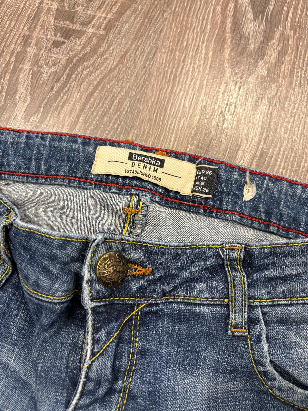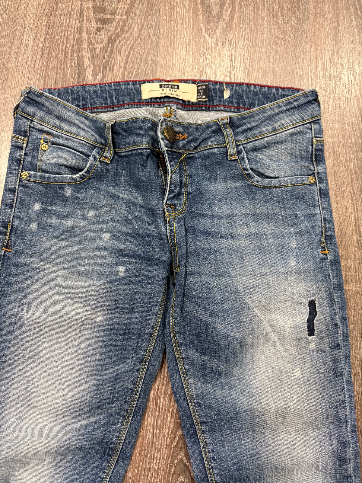 99.Bershka damske stylove rifle,s elastanom,velkost 36,dlzka je 92cm,sirka v pase je od 36x2cm do 42x2cm,predny sed je 19cm,zadny sed je 31cm,sirka stehna pod rozkrokom je 25x2cm do 28x2cm,sirka dole je 13cm