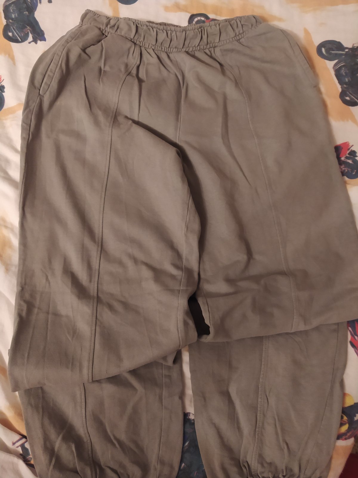 Malo nosene, veľkosťou sedia naM-L, ale detské 15rokov, bocne vrecka. Skracovala som ich,ale su len zachytené niťou, takze sa daju predĺžiť do pôvodnej dĺžky.