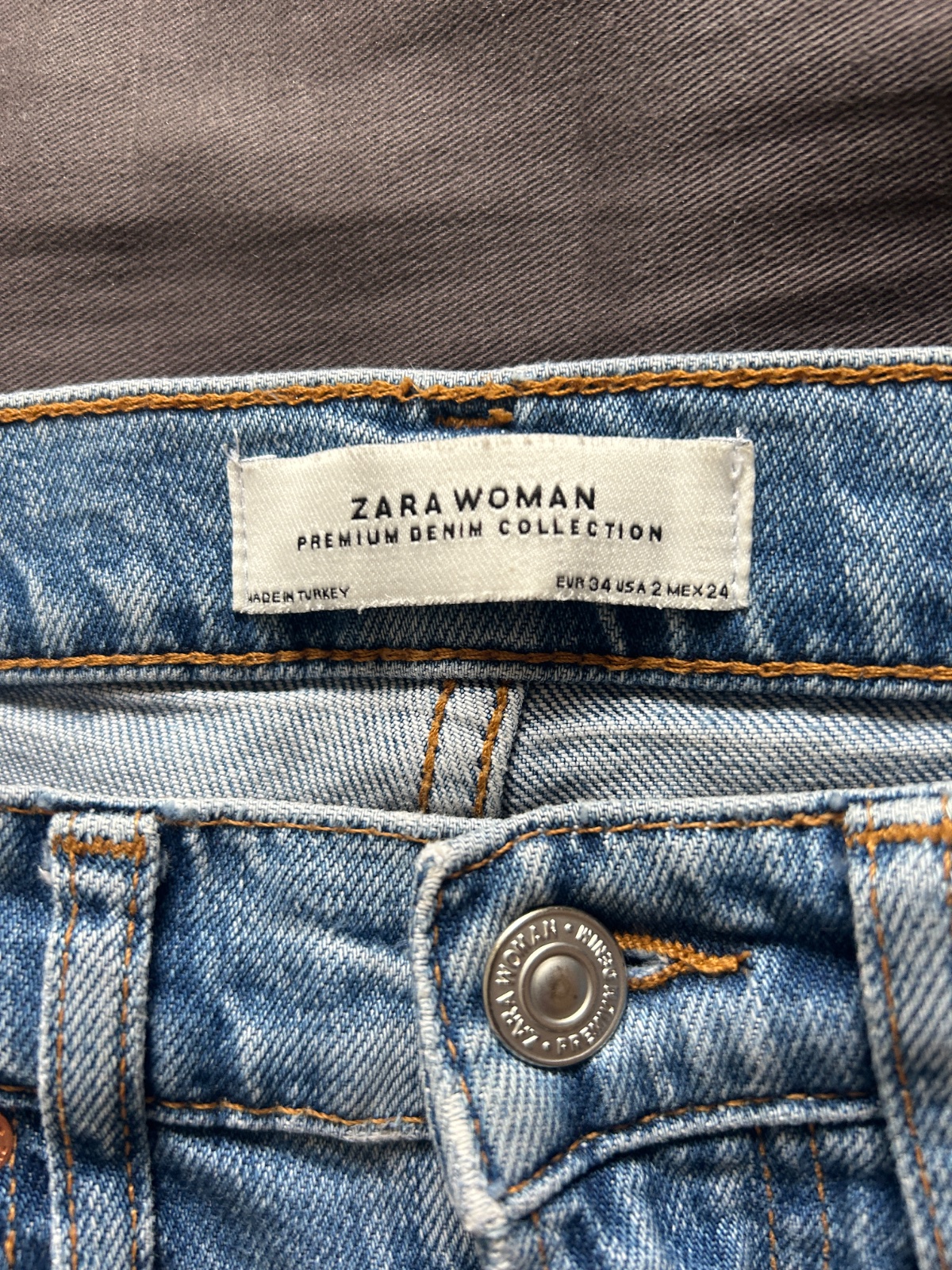 Dámske obtiahnuté rozrhané rifle. Stredne vysoký pás. Veľkosť 34 čiže XS. Značka Zara.