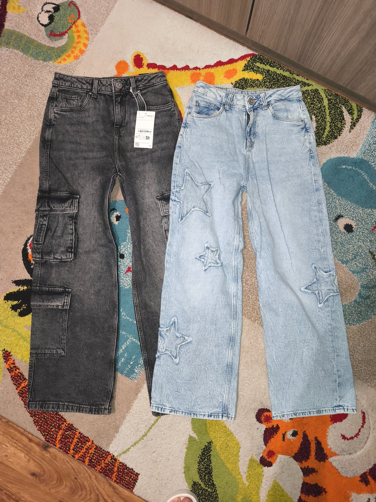 - modré parkrát oblečené, tmavošedé s visačkou