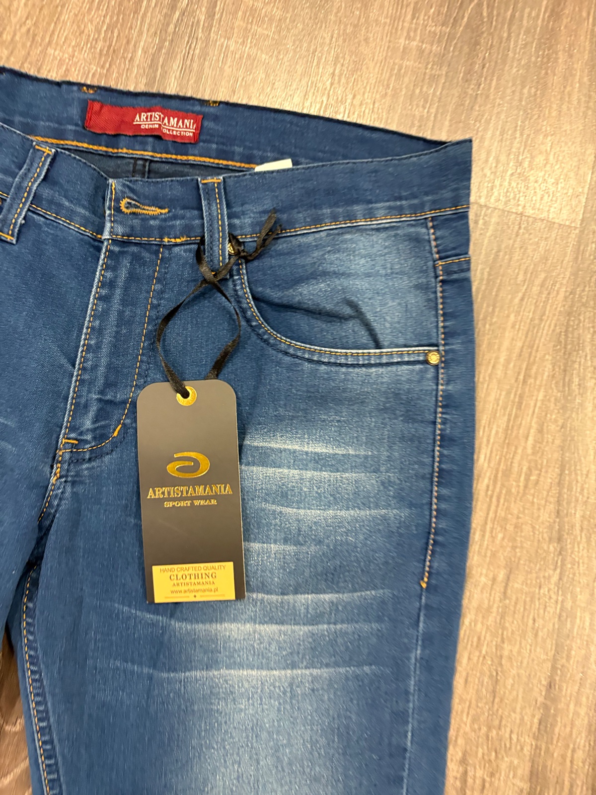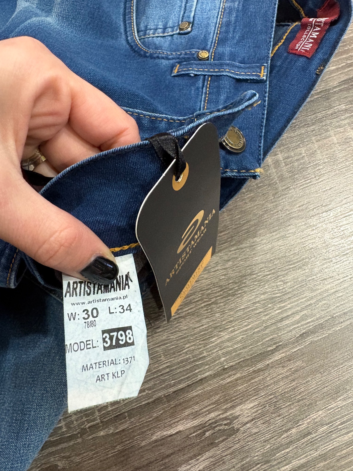 Artistamania tensie nove panske rifle idealne na leto ,komplet s etiketou,PC 55 eur, material 70% bavlna, 2%polyester,1% lykra ,velkost W30L34,dlzka je 114cm,sirka v pase je cca od 42x2cm do 46x2cm,predny sed je 25m a zadny je 36cm,sirka stehna pod rozkrokom je od 30x2cm do 32x2cm,sirka dole je 21x2cm