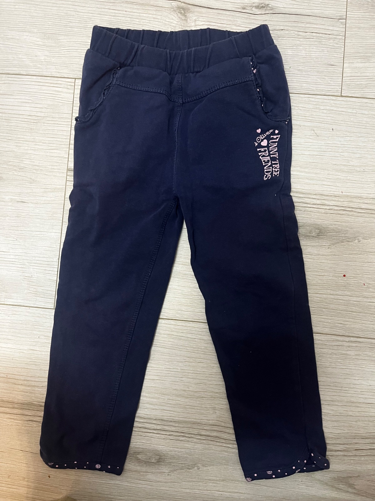 Predám tmavomodre tepláky s ružovými detailami značky s.Oliver, veľkosť: 92 (1,5 - 2 roky).
