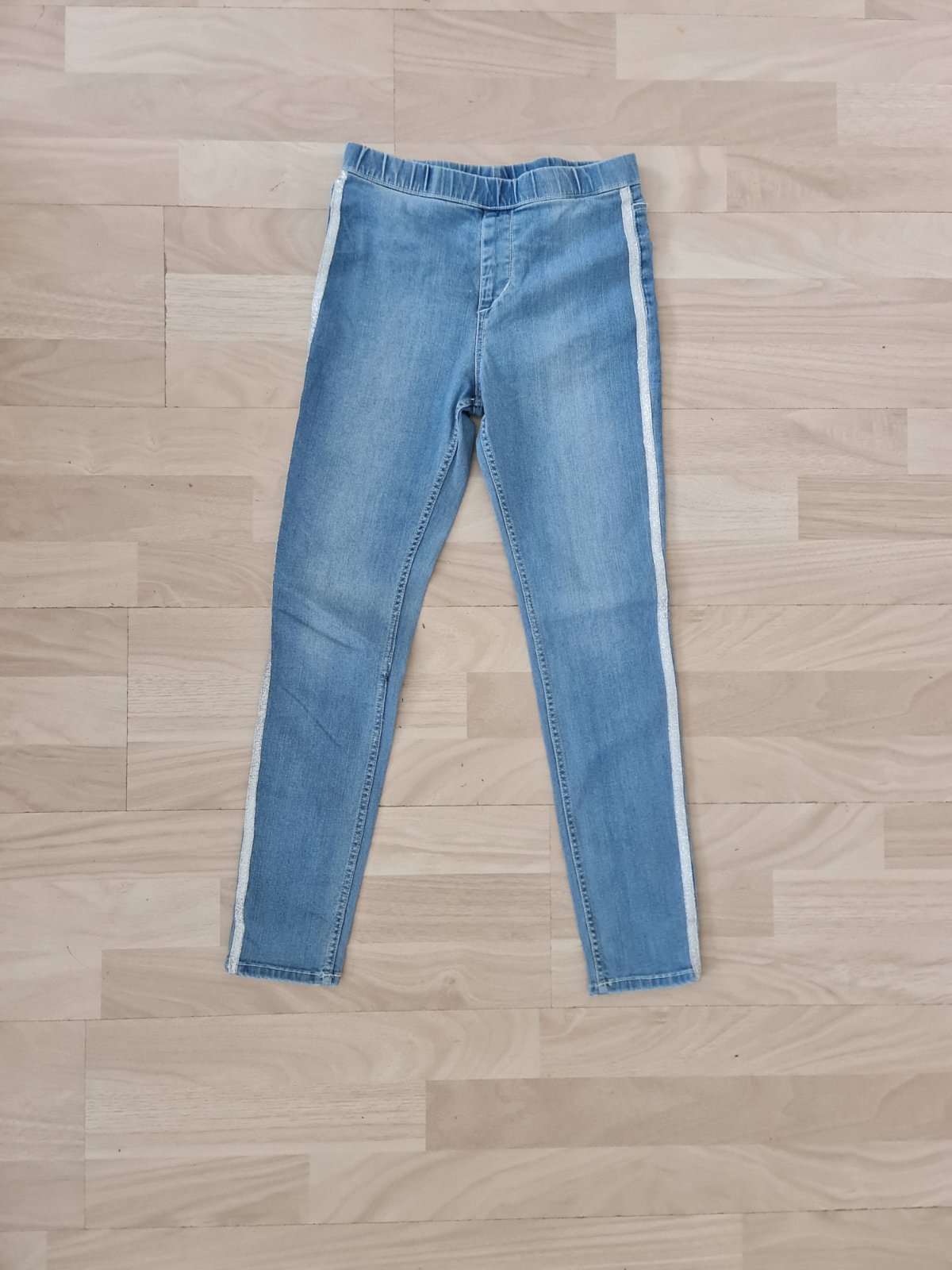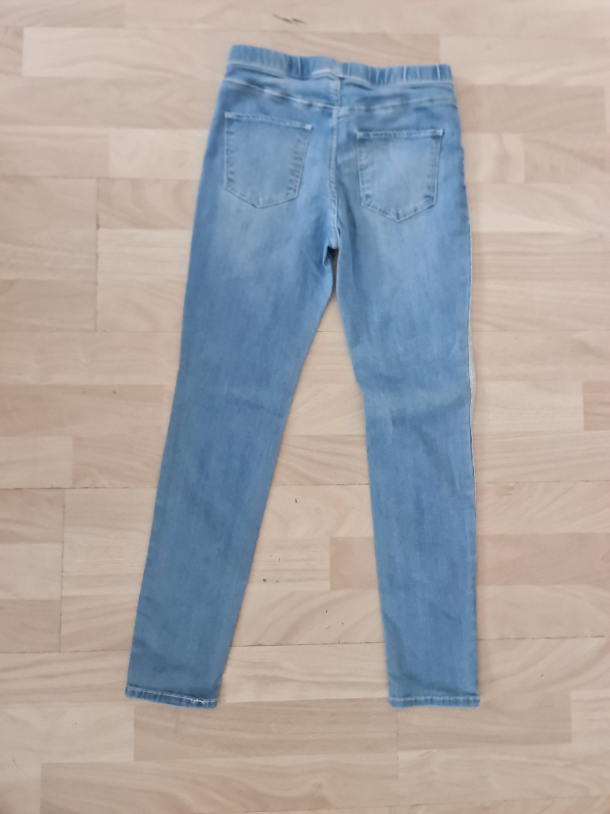Rifle bez flakov a poskodeni, tenka riflovina. Velkost pisana 140 na 9-10 rokov. Rozmery: sirka v pase: 29cm, sirka cez boky: 33cm, dlzka od pasa: 81cm, dlzka od rozkroku: 60cm.