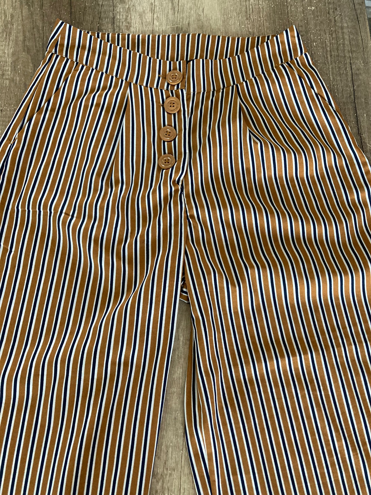 Predám elegantné nohavice, veľkosť XS, značka Terranova. Dĺžka: 89 cm, šírka: 39 cm, pás: 64 cm. Top stav, málo nosené.