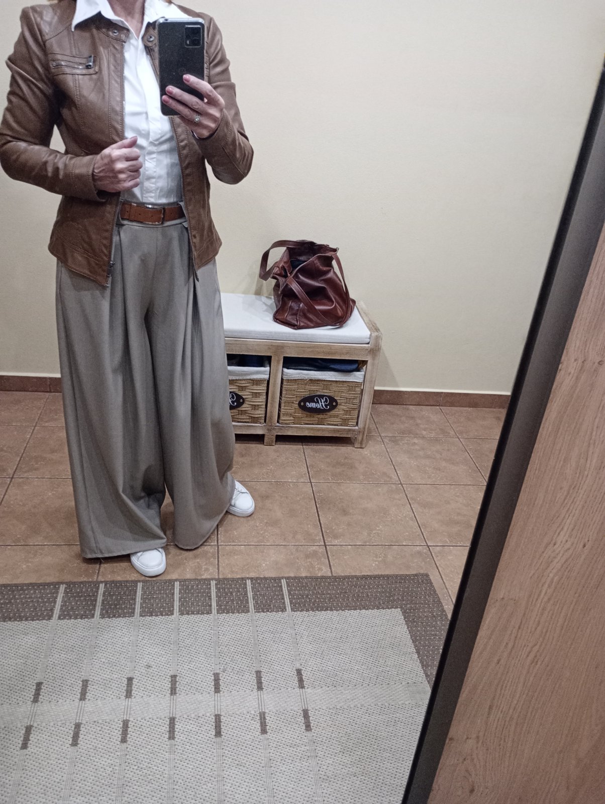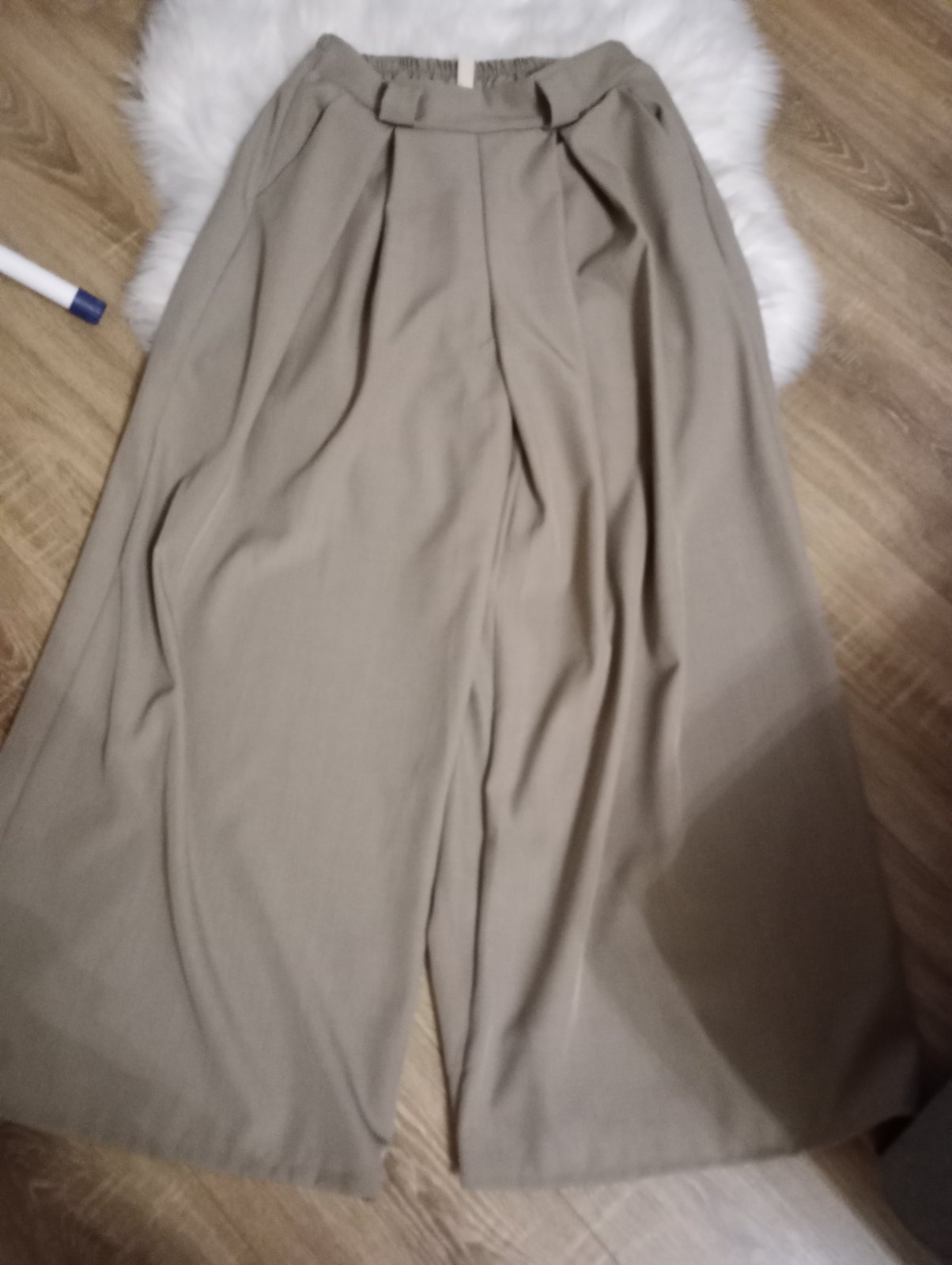Farba cappuccino, sedia na S, menšie M, pás je na gumu, nohavice si len natiahnete na seba. Suprove, bez chyby