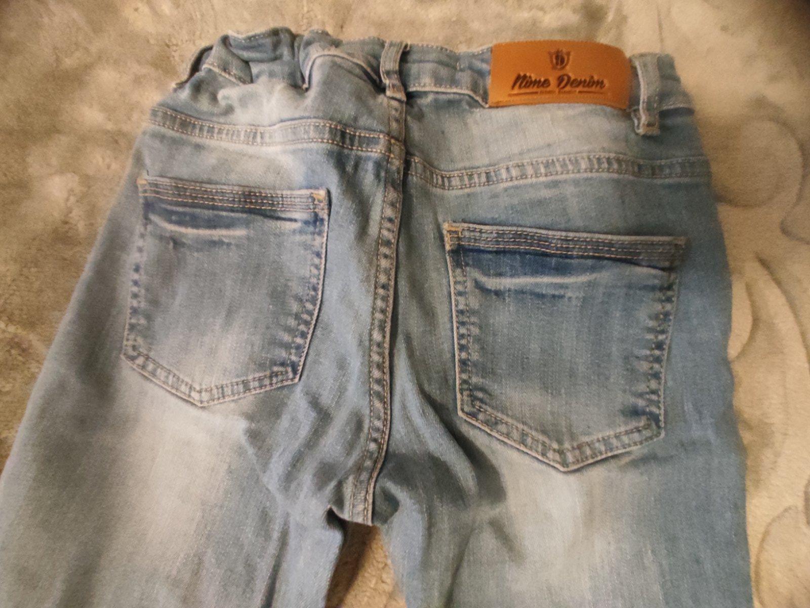 Predám rifle veľ. 8-10 rokov, dĺžka 80cm, boky 36cm, pás ma gumu dá sa meniť, na foto pozri zasivana diera na kolene, za 5e.