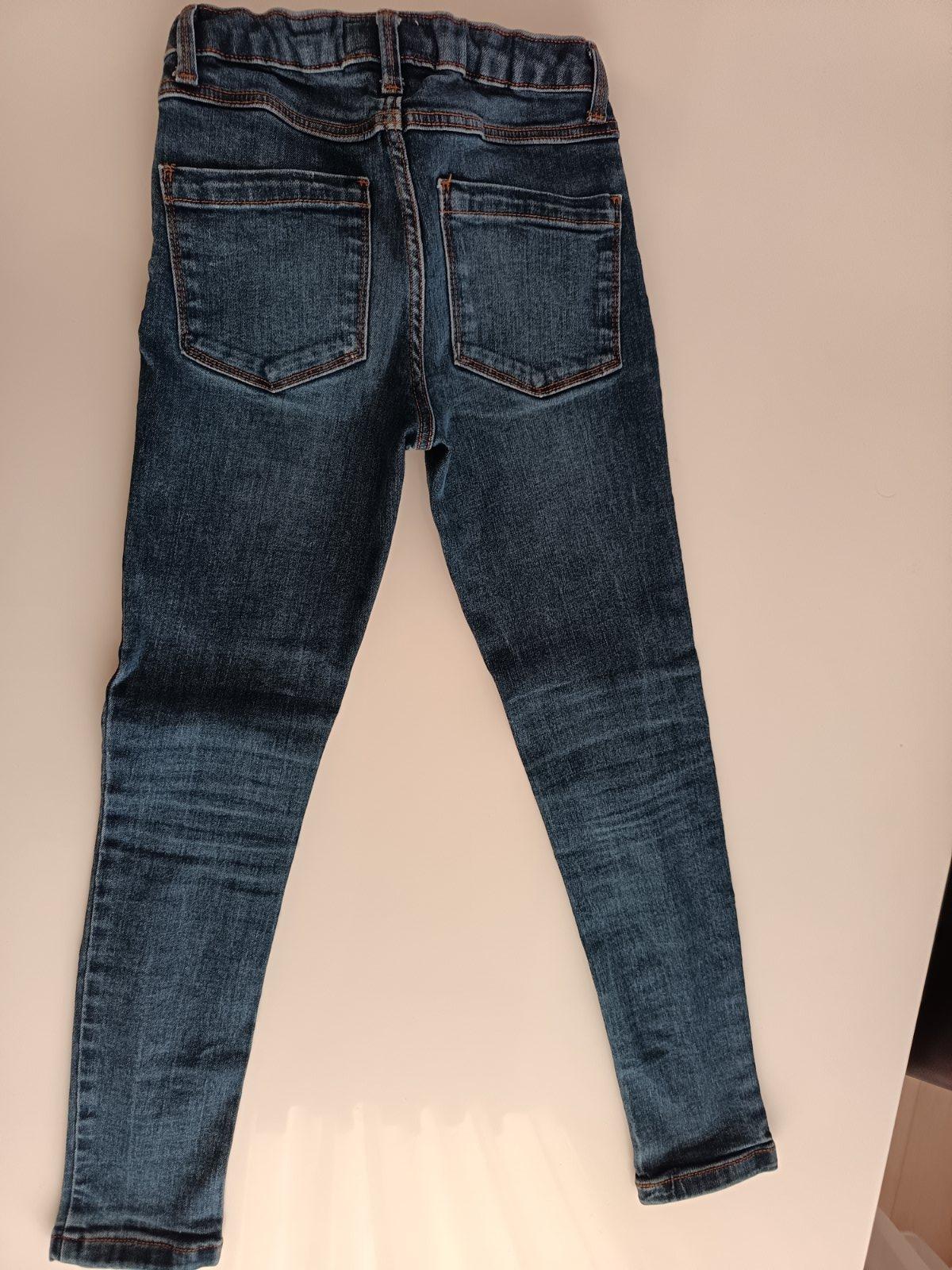 Rifle slim, tmavomodrej farby, zapínanie na zips a gombík,v páse regulovateľná gumička, v top stave