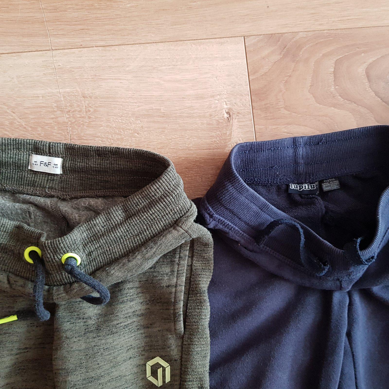 4 teplaky, dobry stav, čirne a zelene zateplene/Tesco, modre- lupilu. Cierne maju na kolene dierku na zasitie.Cena spolu 8e.
