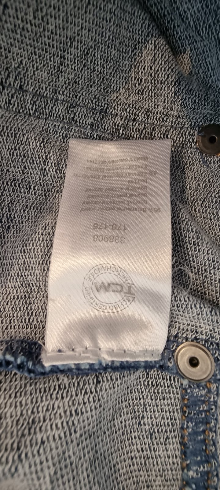 modre rifle bez elastanu, maju vysoky pruzny pas s gumou, aj spodky su do patentu, vpredu pod vreckom vysita znacka, vzadu velka nasita znacka.. dlzka 99 cm, pas 36x2 az do 48 cm, boky 48x2 cm, p.s...