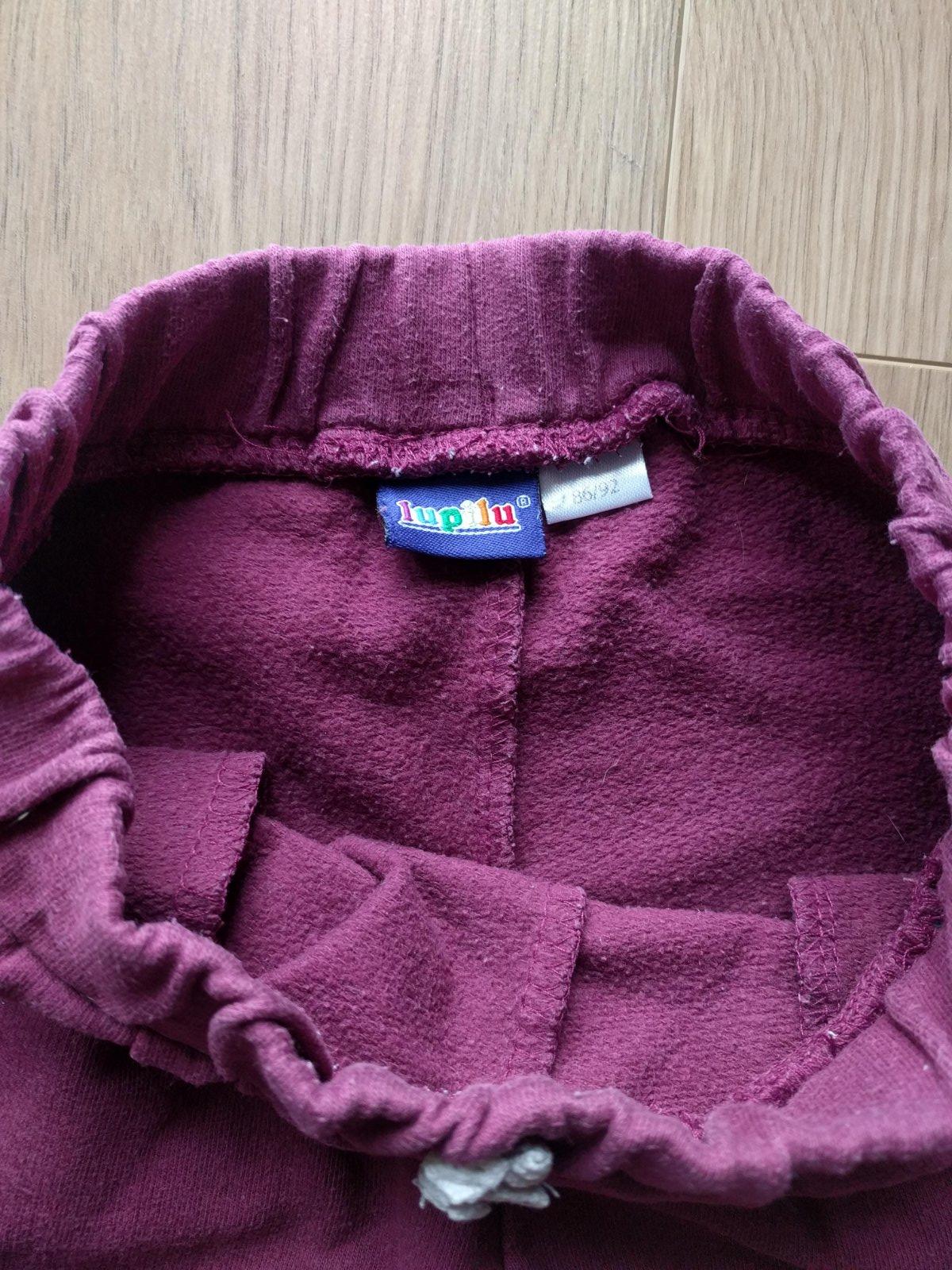 Tepláčiky vo veľmi dobrom stave, bez dier, fľakov, iných poškodení, či vyblednutí. Kvalitný materiál s 80% bavlny, jemné, príjemné. Dvojčíslo 86/92. Cena za obe bez pošty.