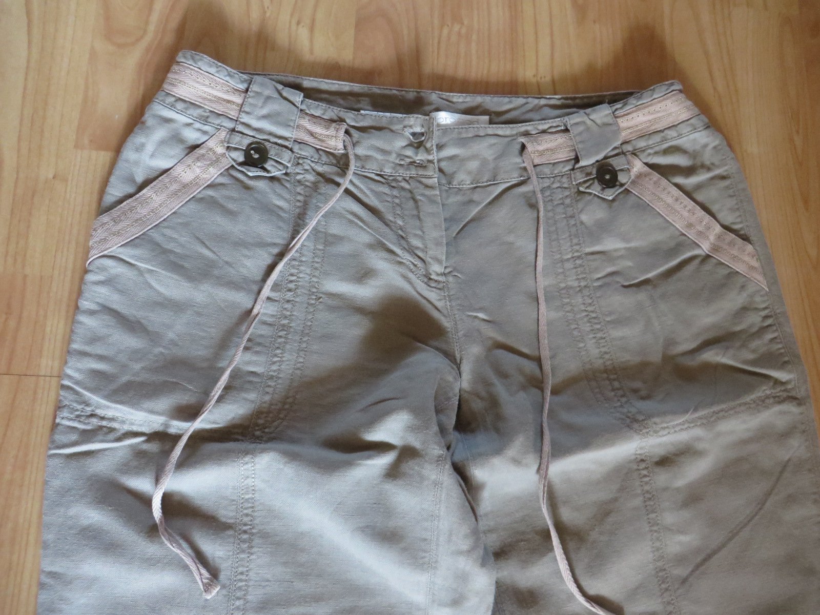 Predám svetlohnedé ľanové nohavice, veľ. je 40, značka PROMOD. Materiál je ľan/bavlna, sú rovného strihu. Celková dĺžka je 101 cm, pás 87cm, boky 58x2 cm.
