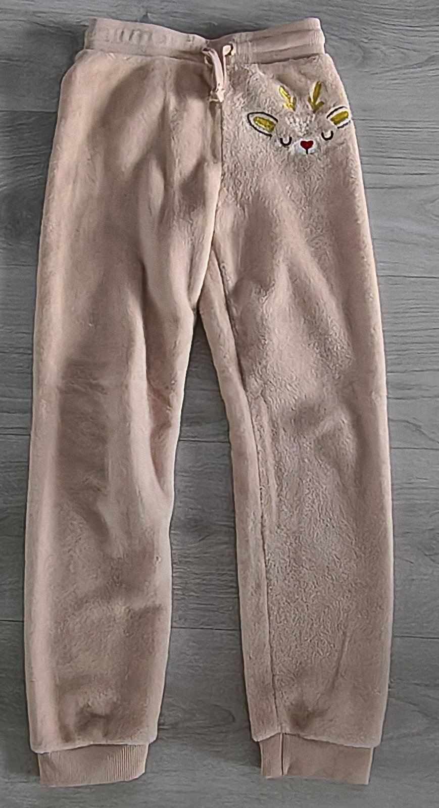 Predám pekné teplé tepláky, materiál plyš. Odhadujem veľkosť 134. Dĺžka s patentom 81 cm, dĺžka od rozkroku s patentom 57 cm, pás sa dá stiahnuť šnúrkou 2 x 29 cm. Bežné známky nosenia.