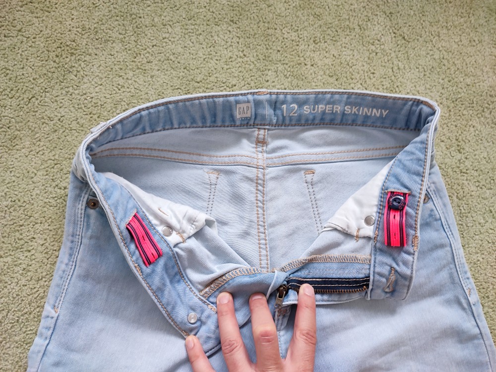 málinko nosené rifle, mäkučké, kvalitné. je to špeciálna veľkosť s užším pásom a bokmi pre štíhle dievčatá. bez akýchkoľvek poškodení.