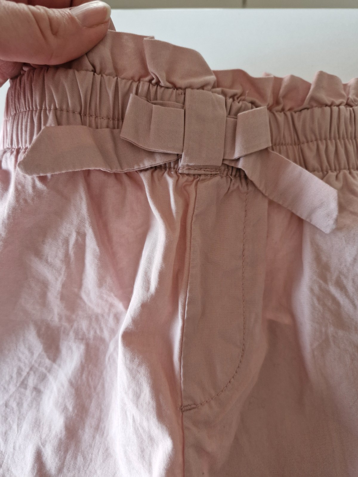 Bledoruzove elasticke nohavice. Nosene, bez dier a flakov. Chyba - niektore ozdobne stepovanie na nohaviciach sa pare ( vid detali foto ) Nie su derave. Rozmery: dlzka 69cm v rozkroku dlzka 49cm ...