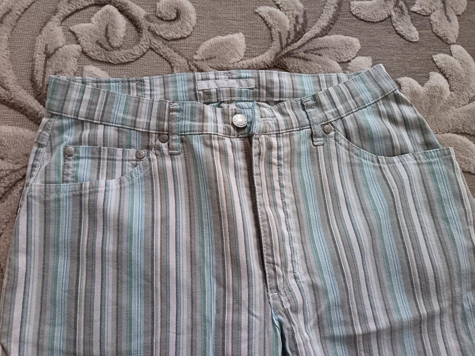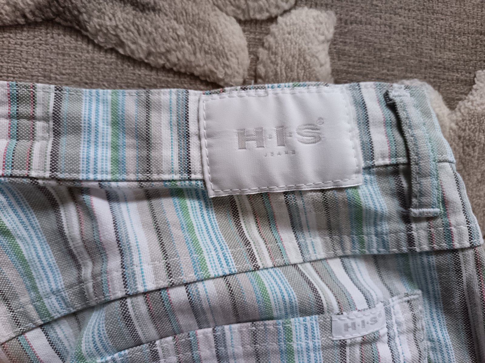 Predám farebné rifle značky H.I.S. Šírka pásu je 37cm. Šírka bokov je 52cm. Dĺžka sedu je 34,5cm. Celková dĺžka nohavíc je