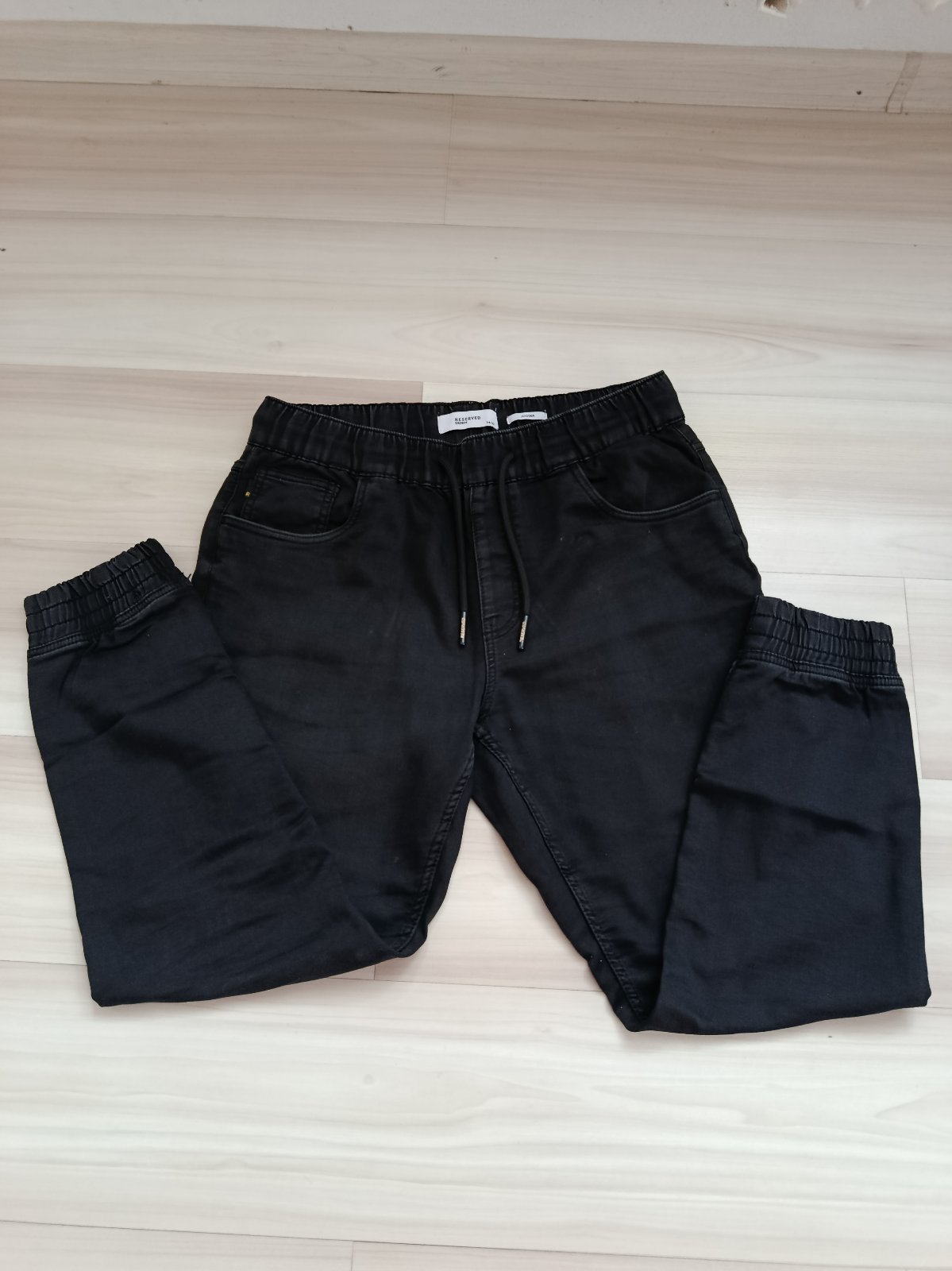 Predám málo nosené rifle zn. Reserved denim jogger, vo výbornom stave, v páse na gumu, aj ukončenie nôh na gumu.