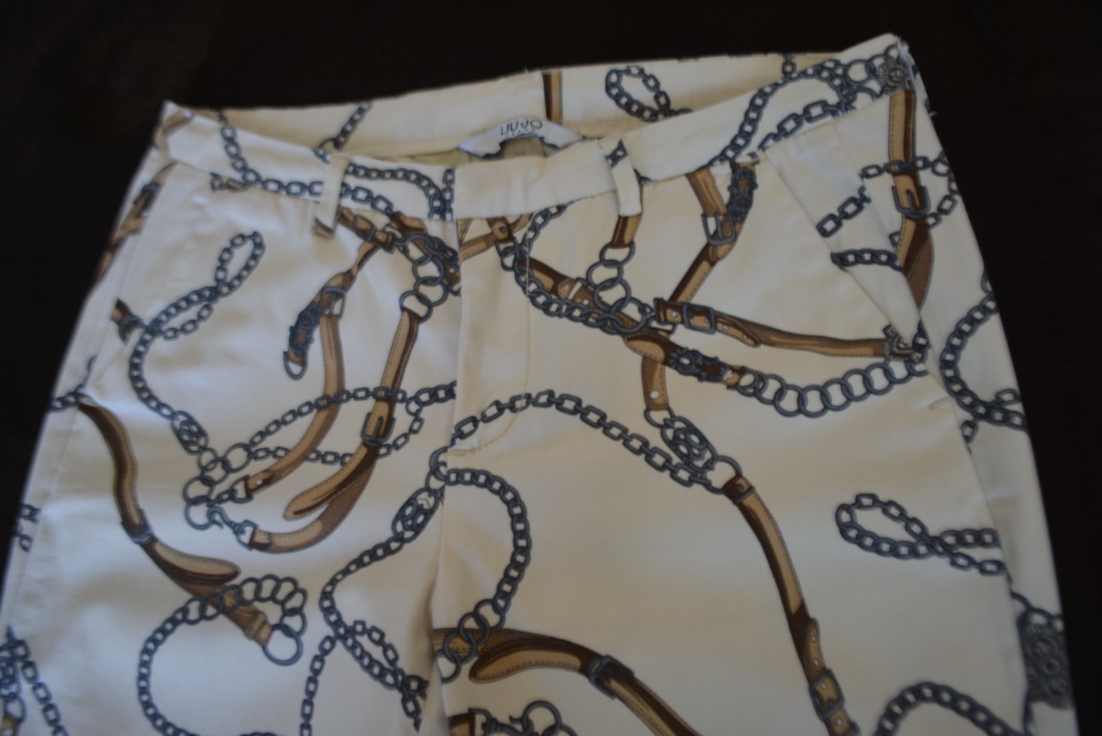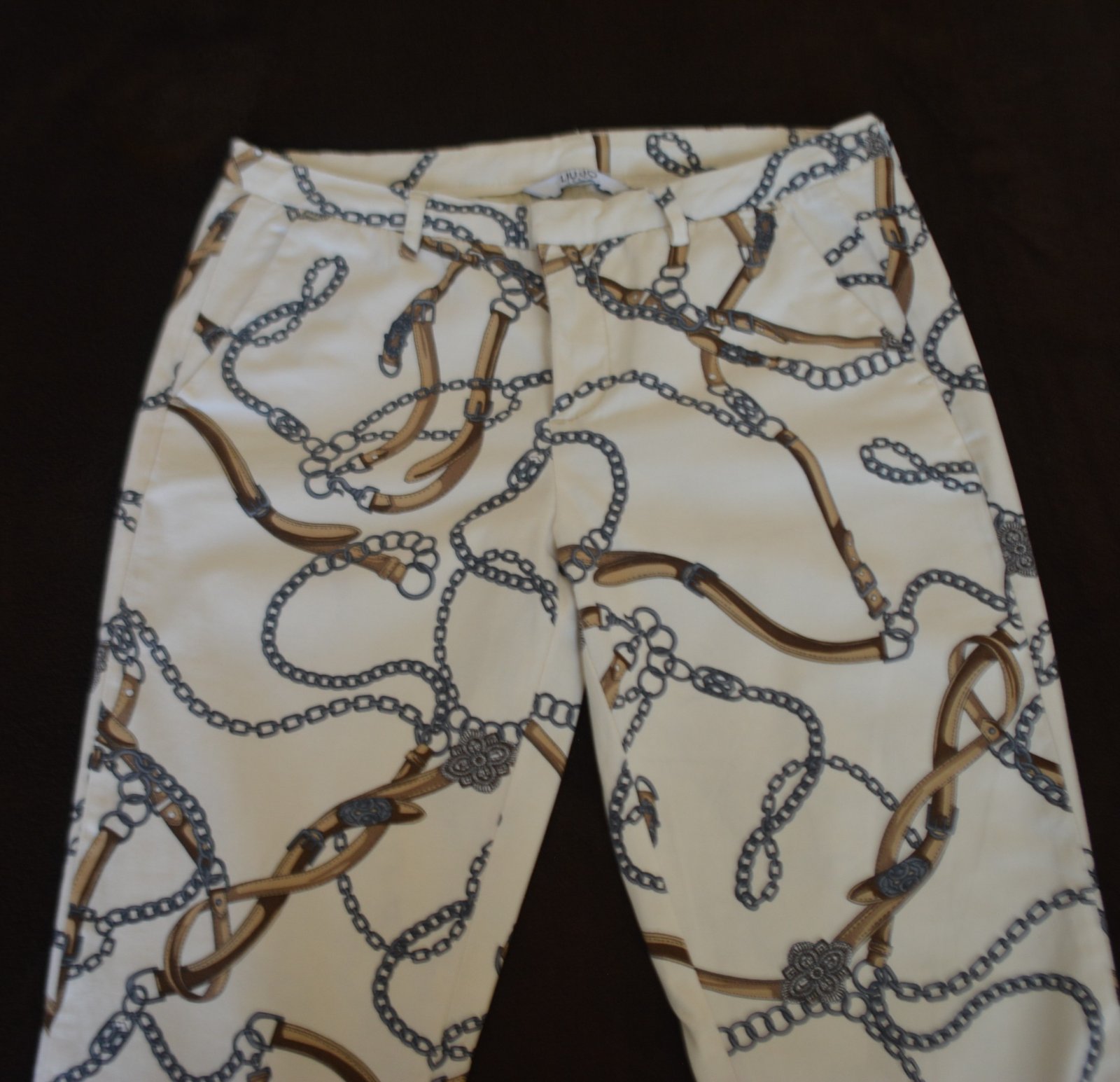 Dámske nohavice rovného strihu, zn. Liu Jo, veľ. S, rozmery: bočná dĺžka 87cm, od rozkroku 66cm, pás 2x39cm, predný sed 21/ zadný sed 33.