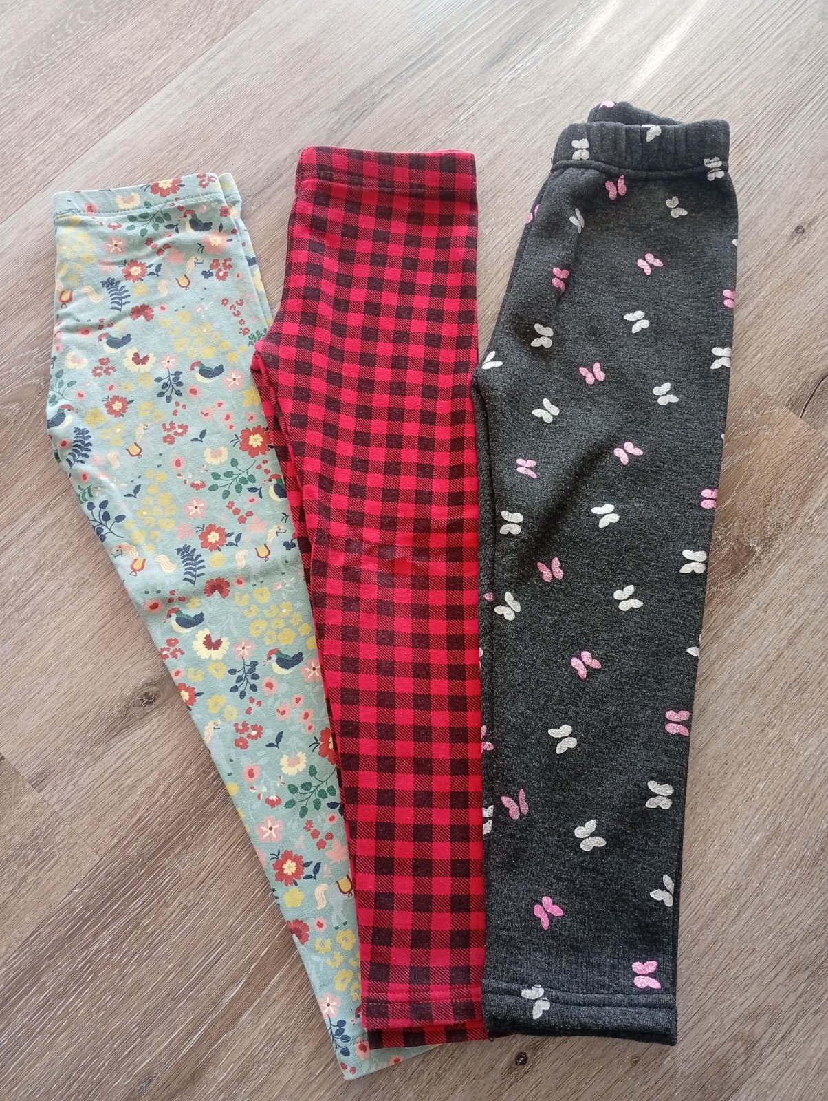 Nosené v top stave, žiadne poškodenie. Veľkosť sadne ako 98/104. Zelené C&A, červené pepco a sivé objednané cez detský obchodík. Sivé sú hrubé.vena spolu 7€ plus poštovné