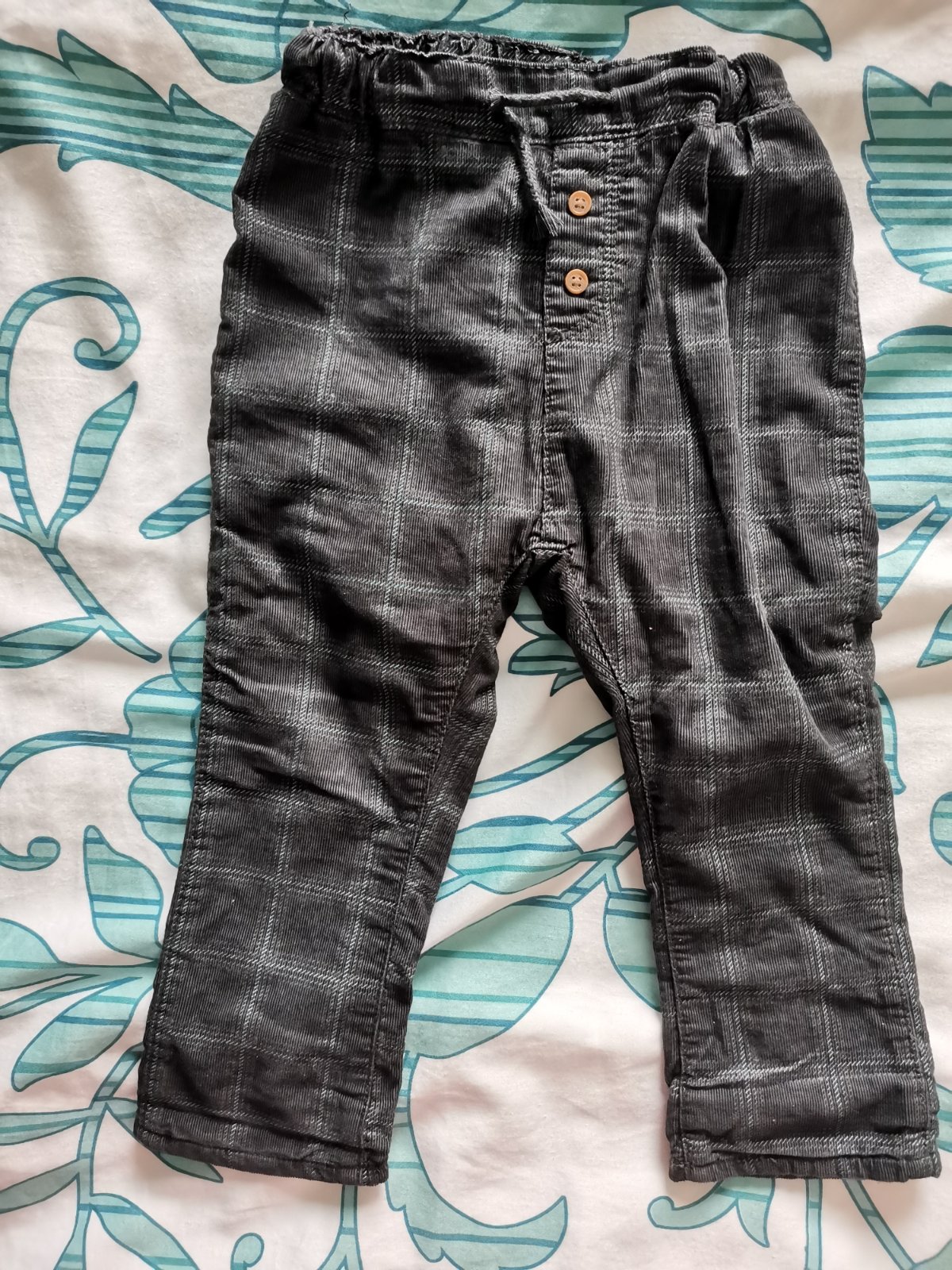 Zateplene nohavice bavlnenou latkou. Na jednej nohe maly fliacik. Celkova dlzka 52cm.