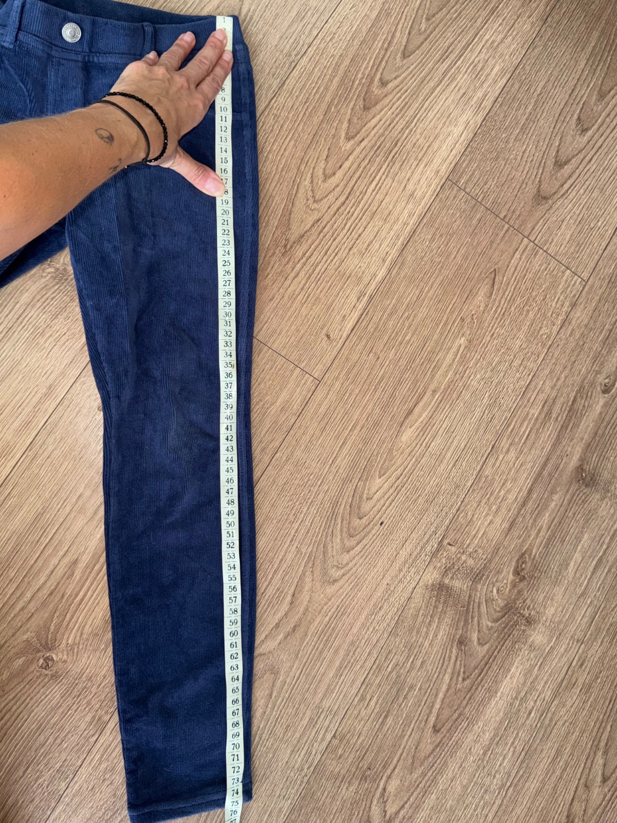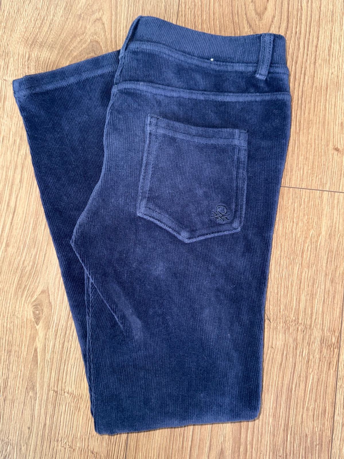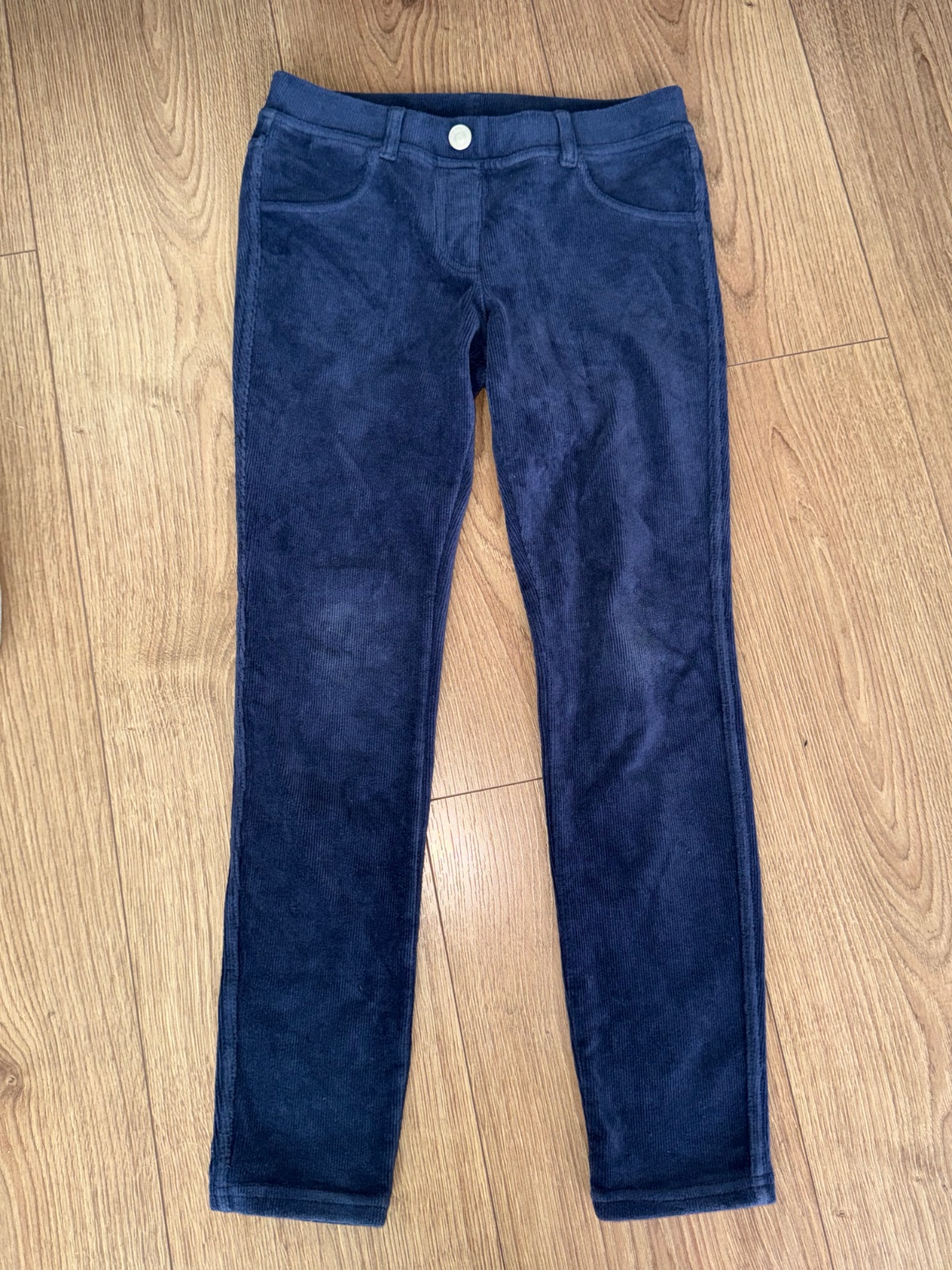 Makkučke pohodlne naťahovacie menžestrove nohavice v krásnej sýtej modrej farbe , na jeseň alebo zimu, vo veľmi peknom nosenom stave