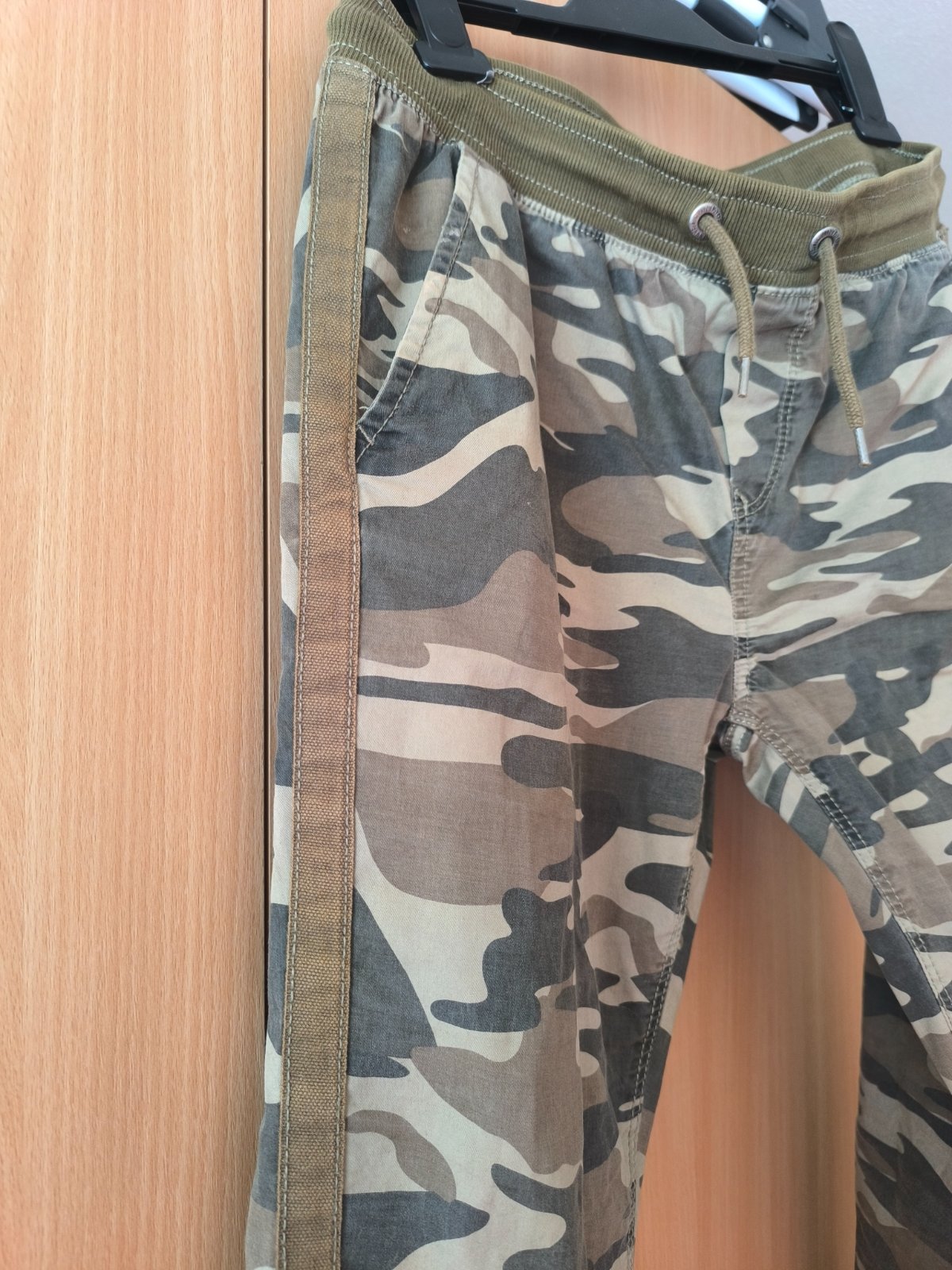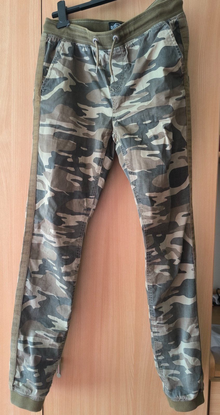 Malo nosene, napriek tomu sa synovi podarilo na pravom kolene spraviť malé zatrhnutie. Inak bez chyby, frajerské, veľmi pekné. V páse regulácia, šnúrka nie je funkčná. Zapínanie na gombík a zips. ...