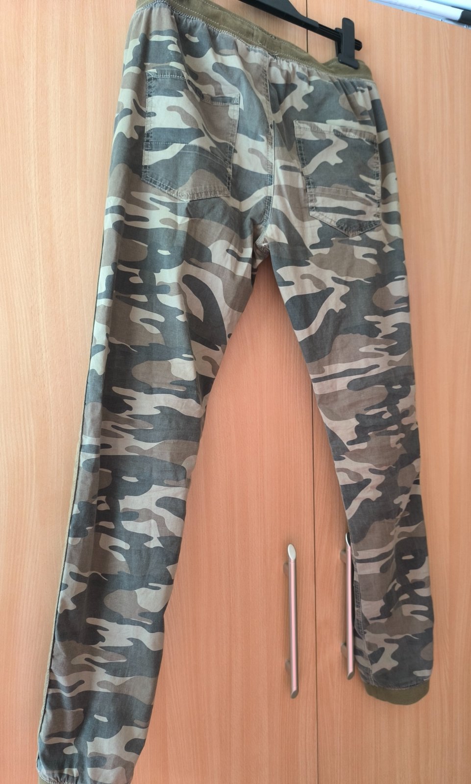Tenké bavlnené nohavice materiál akoby krep malo nosene panska veľkosť 170-174 malo nosene syn rýchlo narástol sh nepoškodené v páse su zo sťahovaním na šnúrku klasický rázporok 2x bočné vrecká roz...