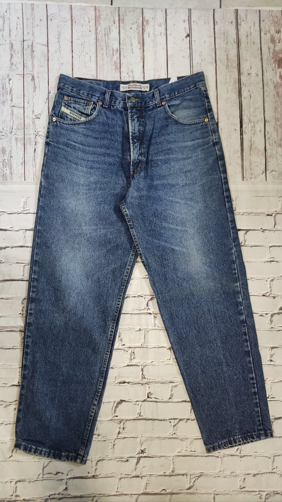 Nosene pánske rifle zn.Humör veľ. 29,svetlo modrá riflovina,perfektne prepracované,zapínanie na gombíky.Zachovalé a nepotrhane,malé vyšúchanie na spodkoch v zadu od topánok(viď foto) Dĺžka rifli je...