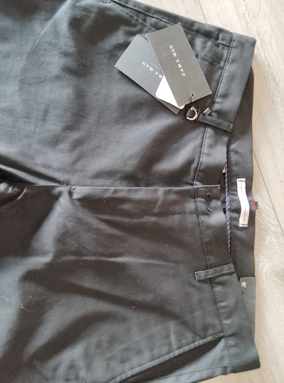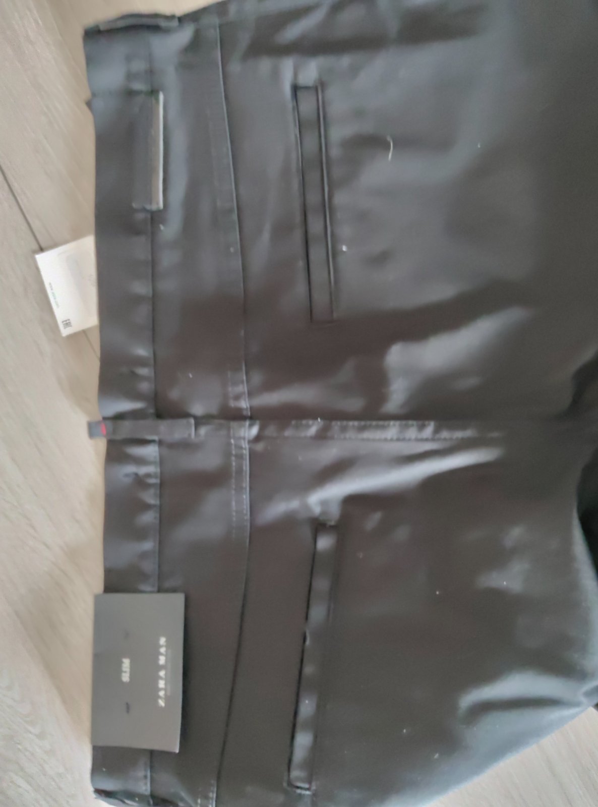 Nohavice majú bežné známky nosenia, čiernej farby s vreckami, rovný strih, zapínanie na zips a gombík, v páse pútka na opasok, nie sú reguľovatelné, tenké, veľ uvedená Eur 46, zodpovedajú cca veľ ...
