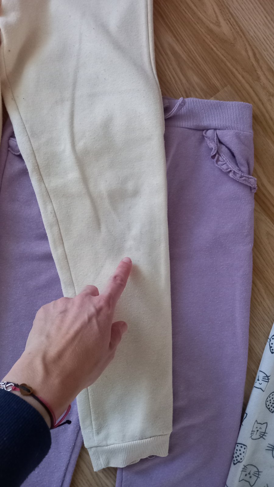 Nosené majú aj zmolky niektoré, dvoje majú fľaky vsekto odfotené, na dvor, okolo domu aj na ihrisko poslúžia, diery nemajú, sú tam aj teplejšie aj tenké. Cena spolu za všetky