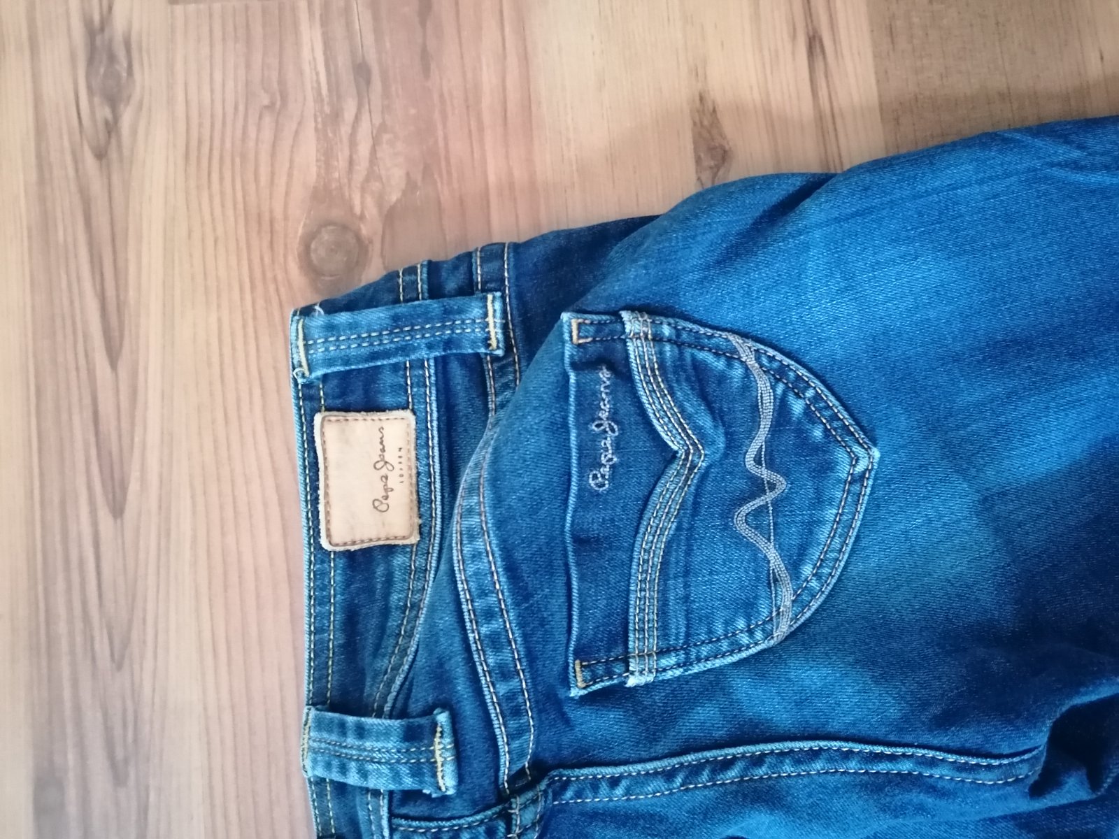 Rifle značky Pepe Jeans, ktoré sú prešívané a vyšúchané, čo im dodáva na kráse. Sú originál, pc: 65€.