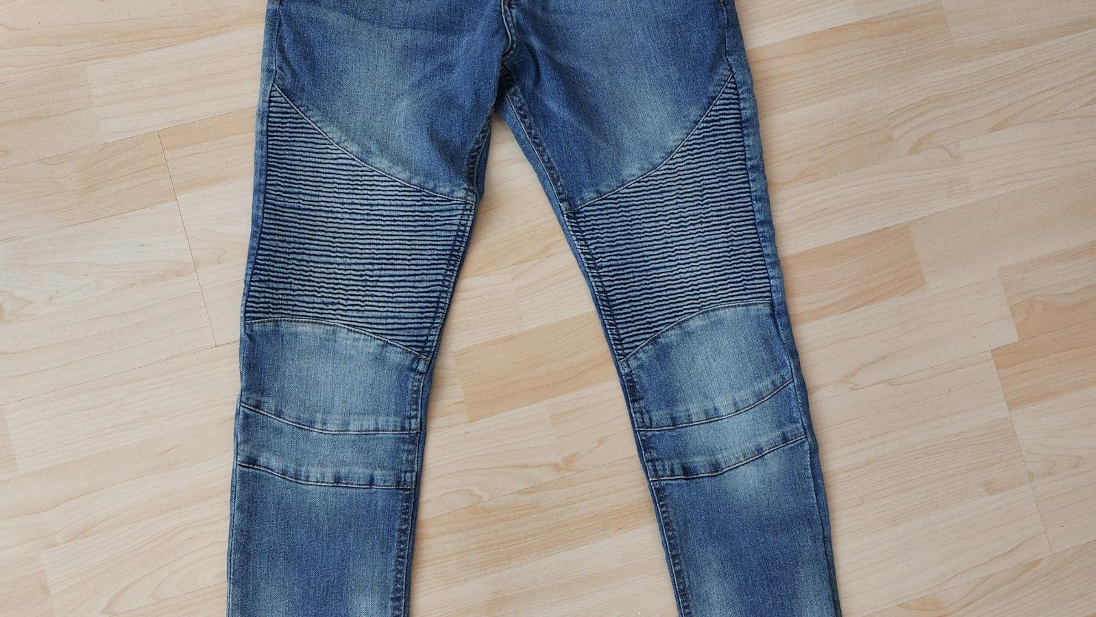 Stav výborný, bez chyby, pás je bez gumičky na regulovanie, ale látka je elastická a natiahne sa, viď rozmery nižšie, príjemne elastické, SKINNY veľkosť. Rázporok je na gombíky. Rozmery: dĺžka 101, 5 cm, vnútorná dĺžka 77, 5 cm, pás v pokoji 36 cm, pri natiahnutí 41 cm, boky 48 cm.