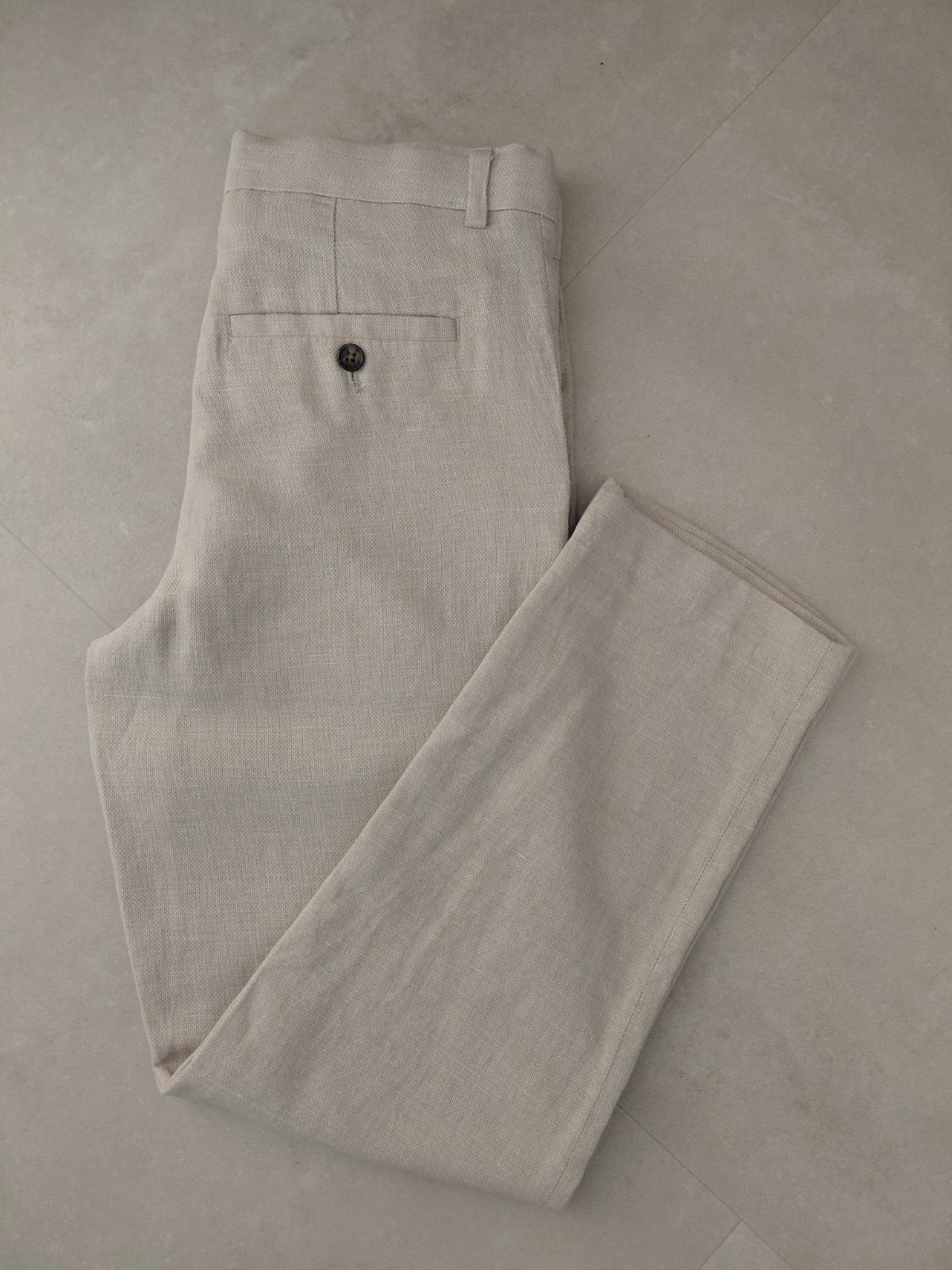 Krásne, slávnostné nihavi, svetlo béžovej farby. Oblečené raz na svadbe.