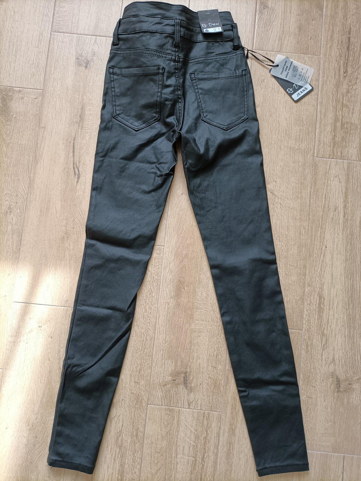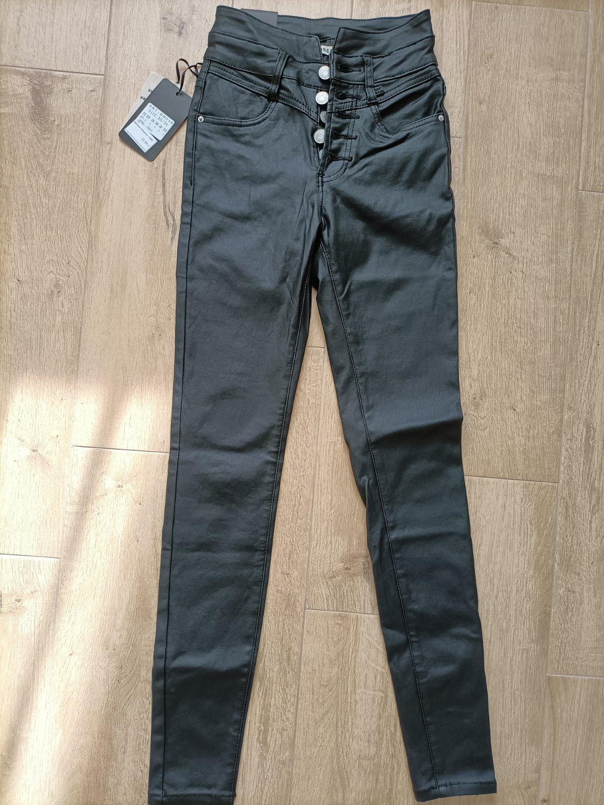 Koženkové nohavice. Netrafila som veľkosť. Vysoký pás. Naťahujú sa.