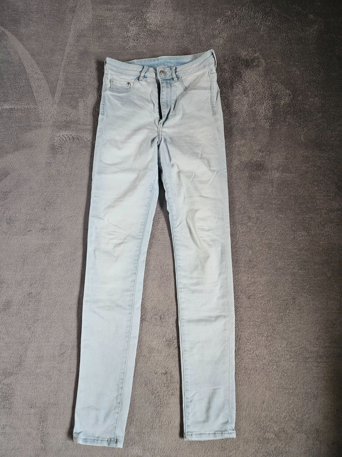 Krásne rifle s ultra vysokým pásom, jemne pružia Absolútne bez chybičky, 1x na sebe. Strih je rovný Pás 32, predný sed 31, zadný sed 39, dĺžka 97 Podľa rozmerov sedia skôr na menšie S, teda veľ...