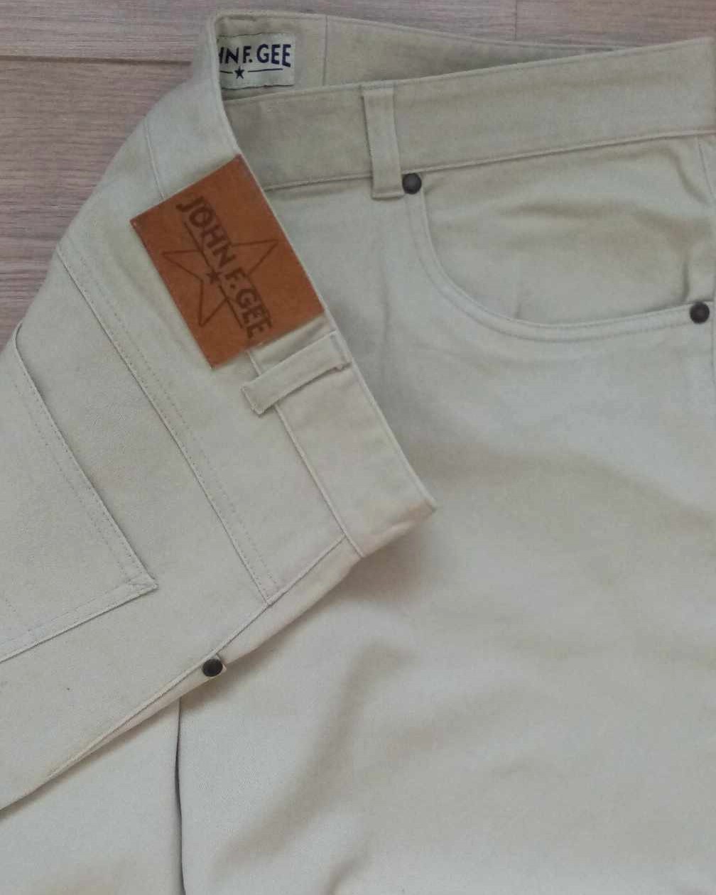 Predám pánske hrubšie rifle béžovej farby veĺ.XL, zn. John F. Gee, d= 104cm, š pás=51cm, klasický strih, dobre sedia na postave, bez poškodení.