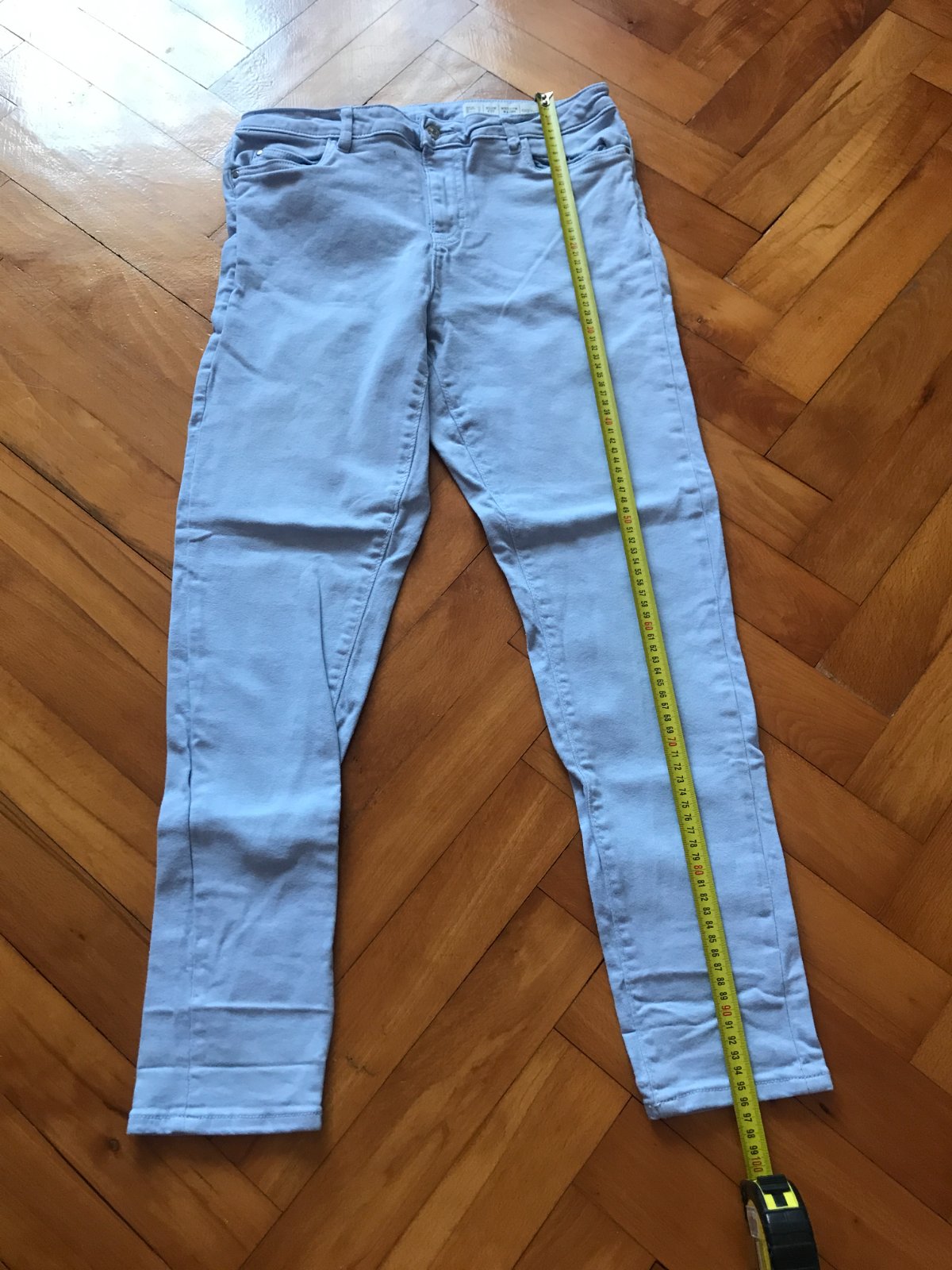 dĺžka -96cm, šírka v páse-39-42x2cm, dĺžka vnútorného stehna- 69cm, predný sed - 26cm, zadný sed - 33cm,šírka bokov- 44x2cm