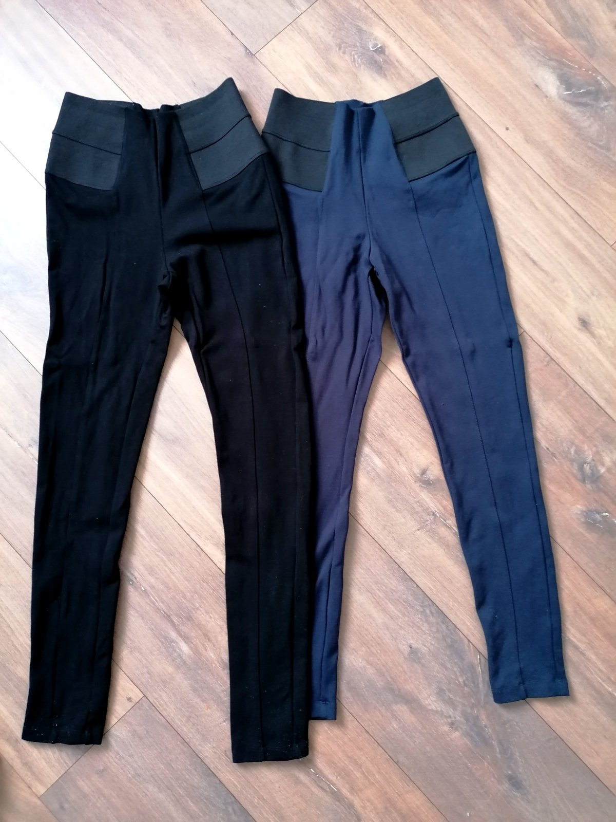 Výborne tvarovacie legíny (pevnejšie, nepresvitaju) /nohavice. V páse široká guma. Čierne boli nosené viac, modré pár x. Dĺžka 92 cm, šírka v pase od 30 do 36 cm, ešte sa možno aj viac natiahnu. Sedia kľudne aj na 38. Cena a predaj spolu za cenu uvedenú v tomto inzeráte.