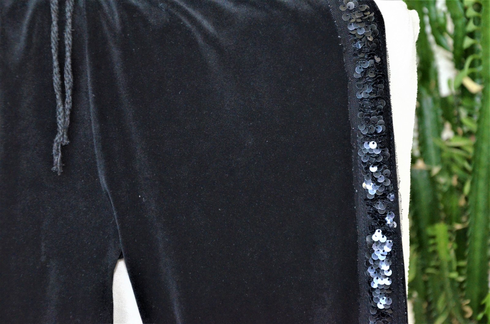 Velúrové tepláky s trblietavými lampasmi-134