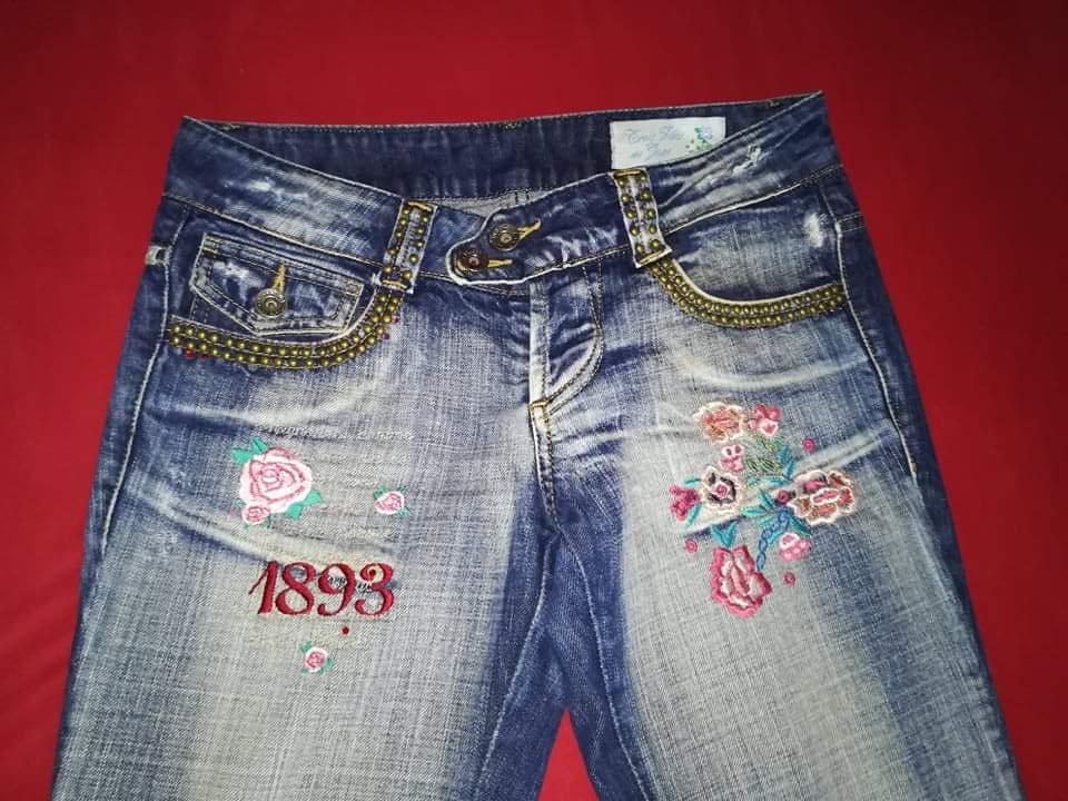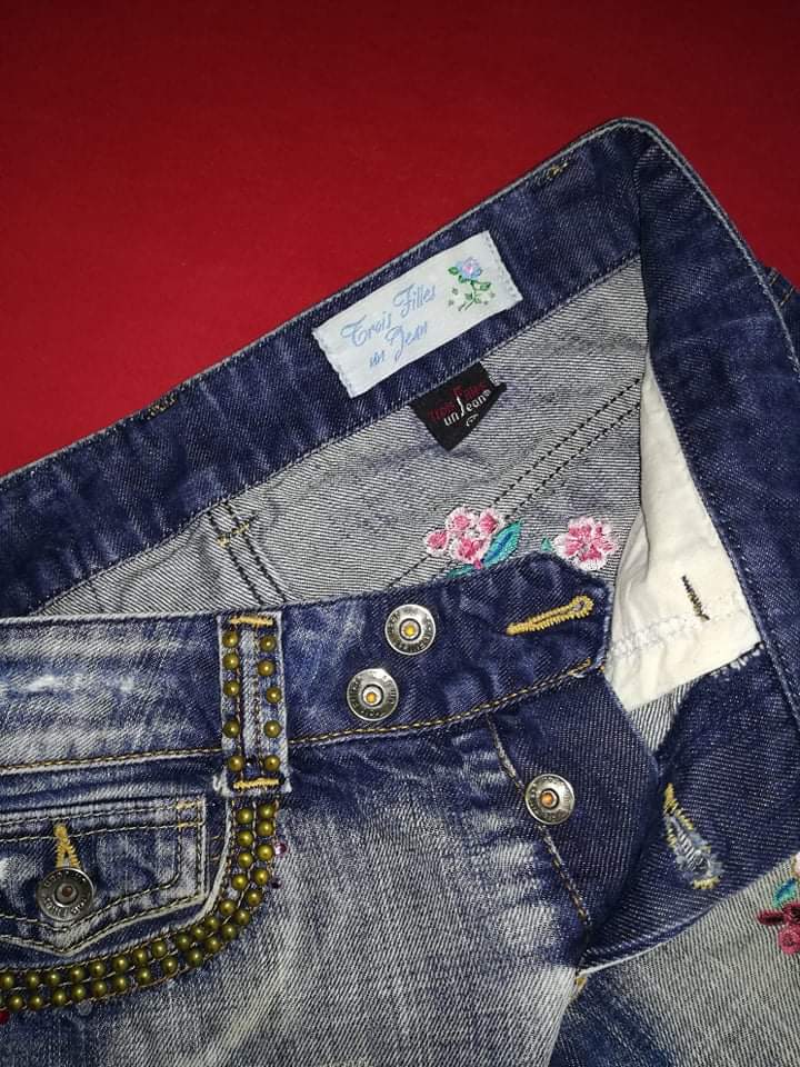 podľa mňa je to veľkosť medzi 36-38 vrecká som ja odpárala, lebo som chcela zmenu ináč je v dobrom stave obvod pasu 2x35 cm obvod bokov 2x45 cm dĺžka nohavíc 107 cm cena je uvedená bez poštovného