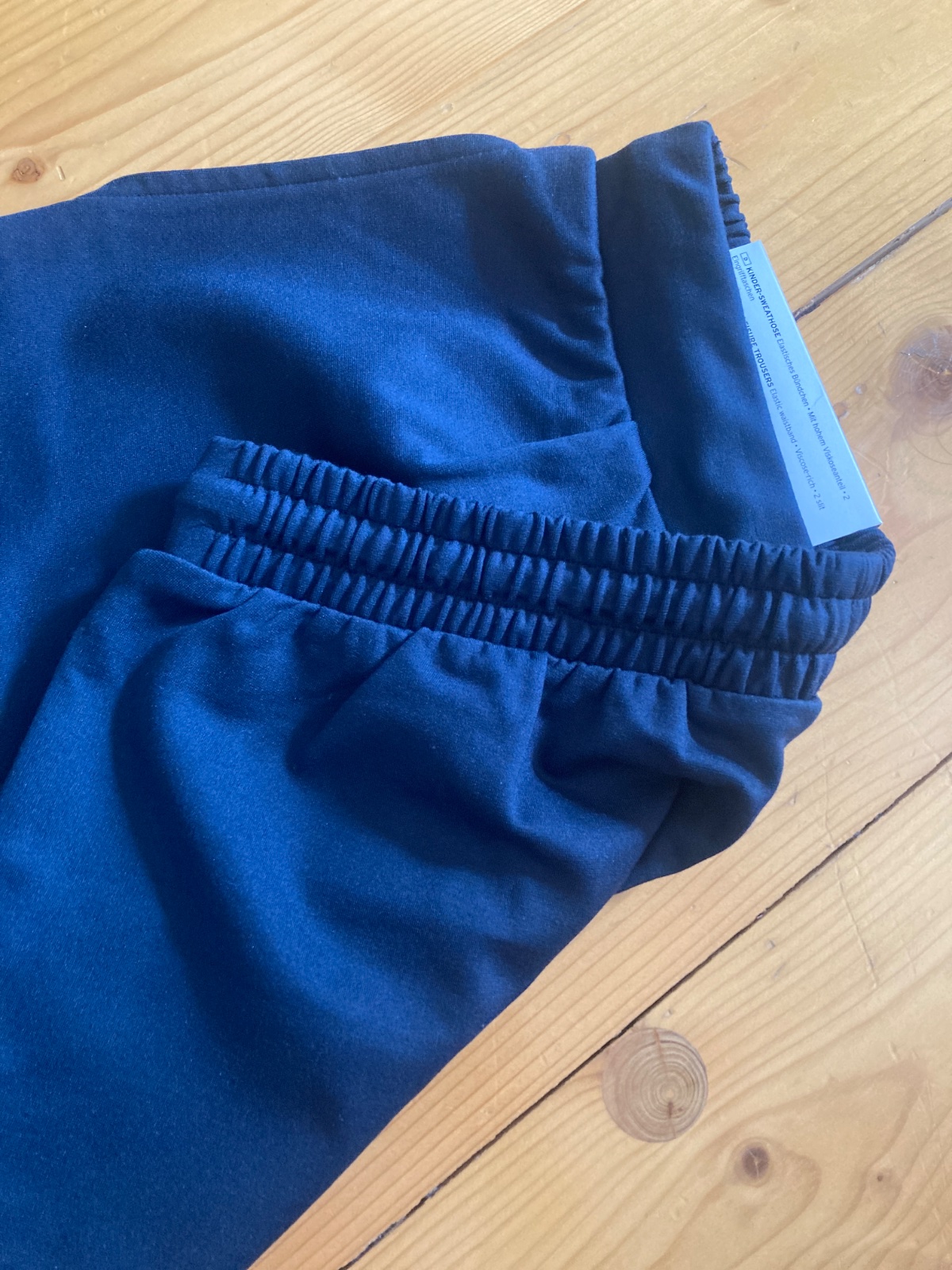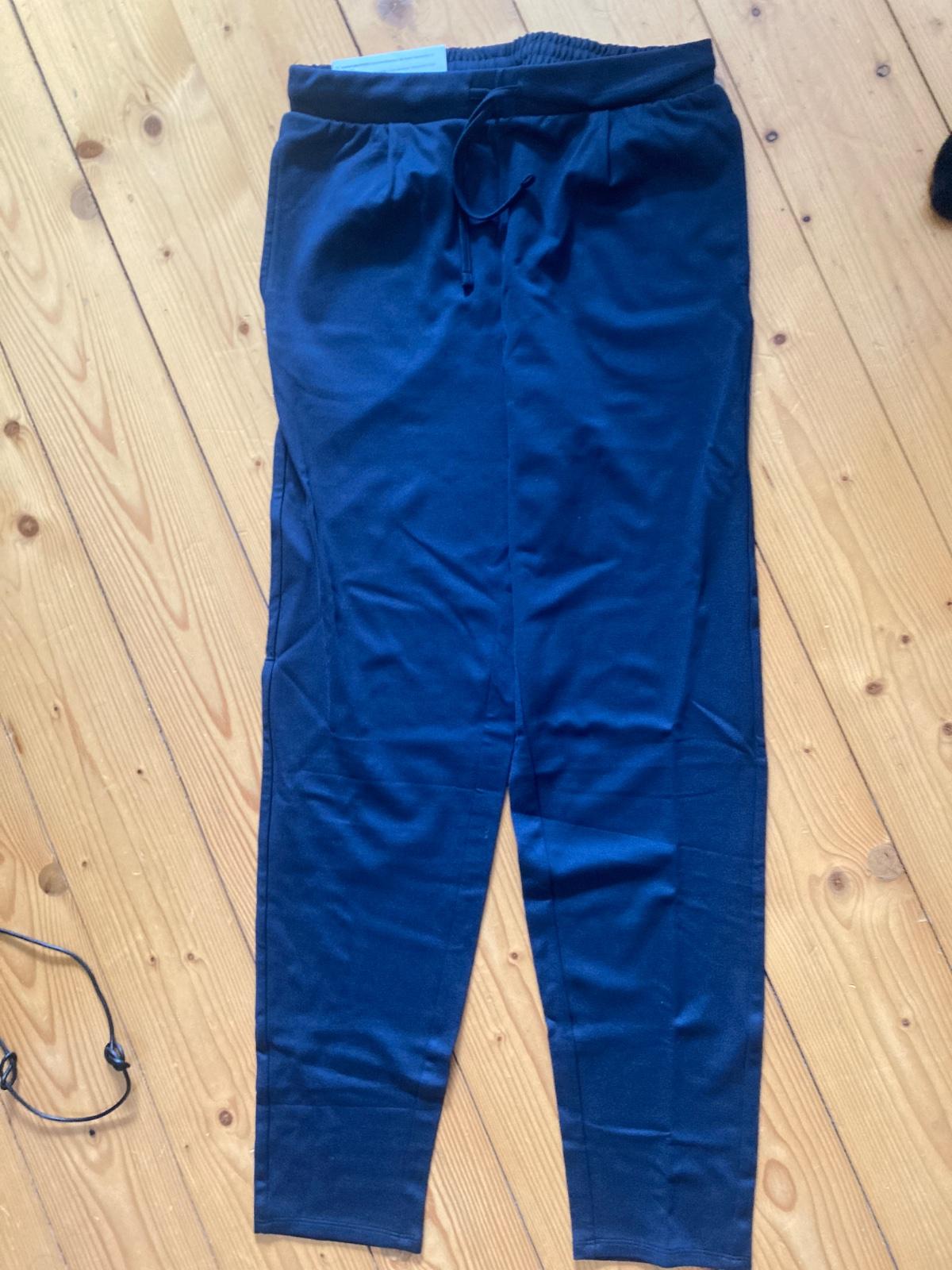 Nové, v páse guma, vrecká, šnúrka na stiahnutie. Materiál viskóza s vysokým podielom elastanu.